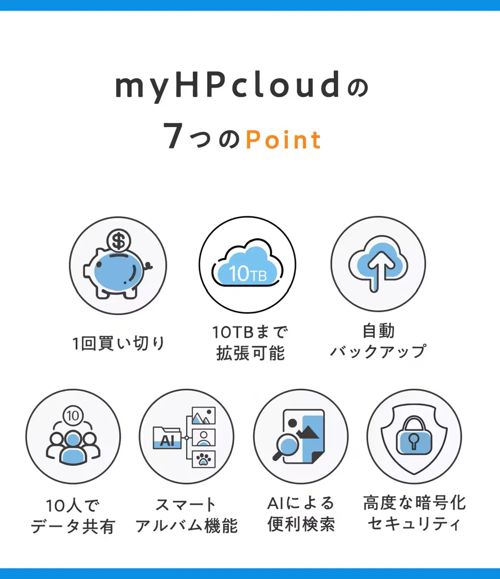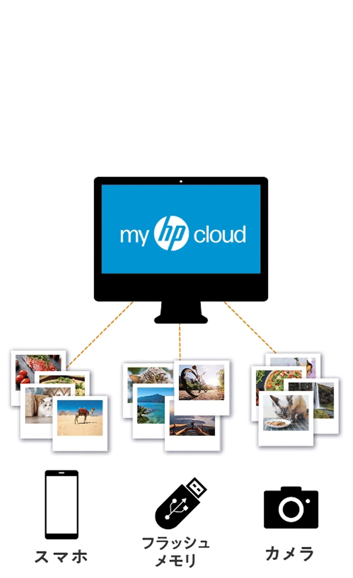 myHPcloudは、世界中のどこにいても、写真や仕事で利用するデータに簡単にアクセス・共有できる最先端技術を搭載したクラウドストレージサービスです。(※ネット接続環境下)