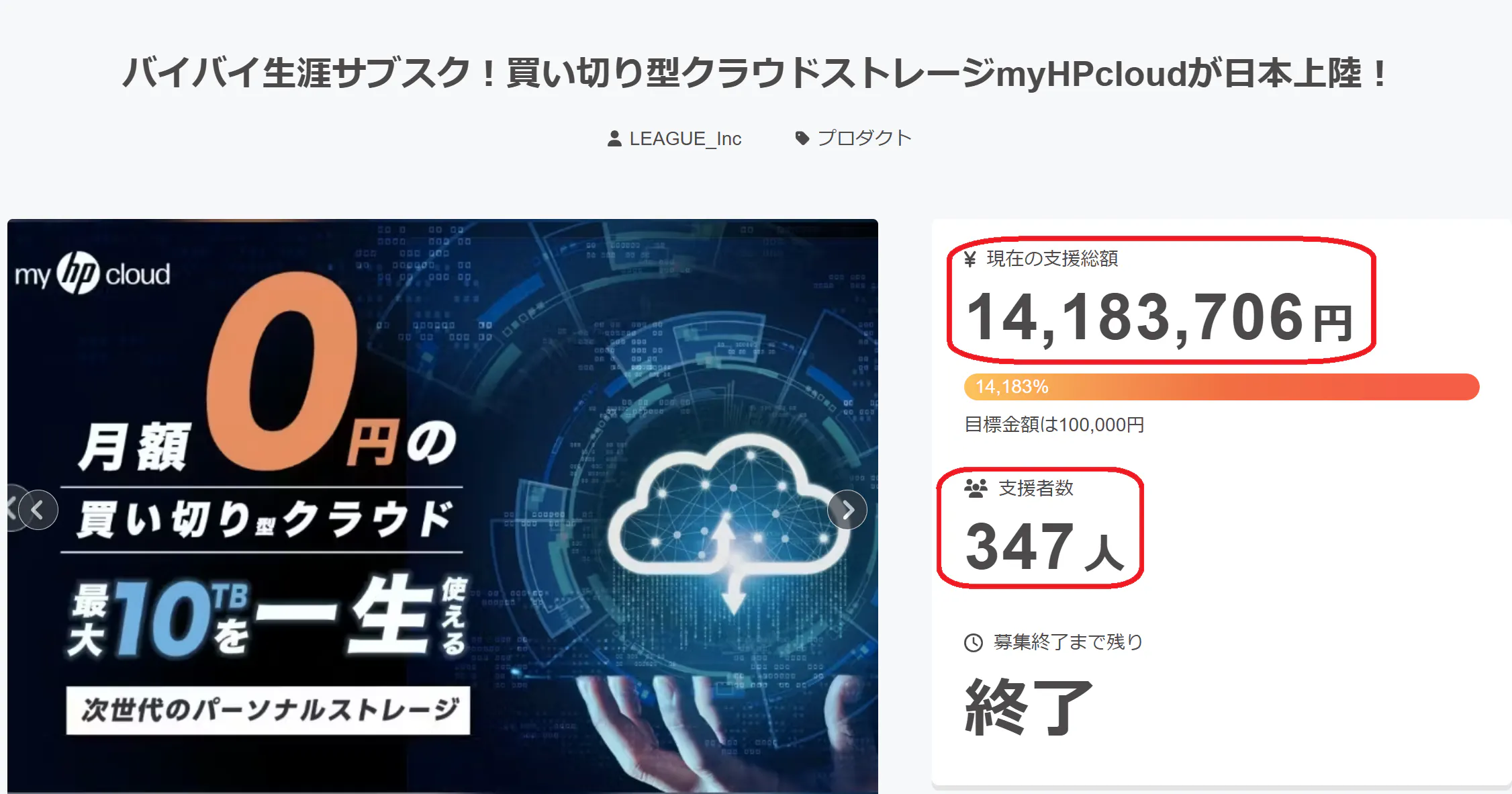 2025/08/31 10:30ご支援者の皆様『myHPcloud』を支援いただき、誠にありがとうございます。バイバイ生涯サブスク!買い切り型クラウドストレージ大容量3TB・5TBが初登場!おかげさまで、公開開始から皆様からのご支援を多くいただき、プロダクトで人気ランキング1位を獲得中!!また、超お得なリターンも売り切れ続出中!ご支援はこちら↓↓↓https://camp-fire.jp/projects/810211/view なぜ?大容量ストレージ5TBが売れているのでしょうか??『myHPcloud』買い切り型での大容量ストレージ5TBの容量拡張がとっても簡単!しかも、特典追加容量付きで通常サイトで買うよりも お得 なんです!さらに、特典追加容量分を商品カード×数枚でご用意!みんなにぴったりの“使い方自由”なクラウドが実現します!【ご支援を検討中の皆様へ】ぜひお得な追加容量があるリターンがあるうちにご支援ください!この素敵な特典は今だけ!!売り切れる前に是非Getして下さい。 ご支援はこちら↓↓↓https://camp-fire.jp/projects/810211/view 引き続きより多くの方々にリターン製品をお届けできるようスタッフ一同頑張りますのでSNSなどでの拡散にご協力頂けますと幸いです。よろしくお願い致します。スタッフ一同 もっと見る