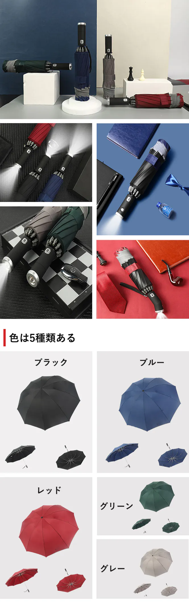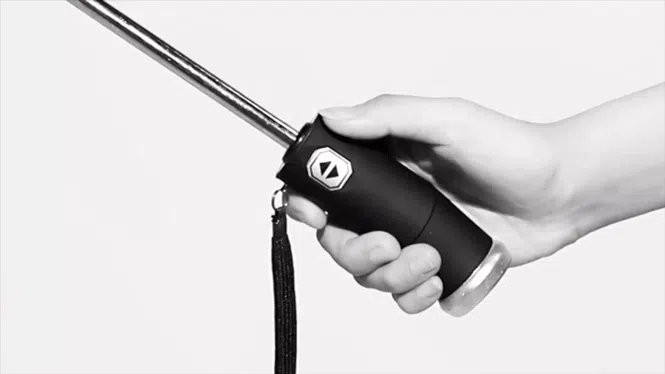 大変な姿にならないように、ledは持ち手部分にあるボタンを押すだけで片手でワンタッチで開閉が可能。