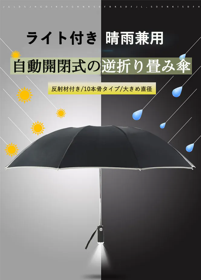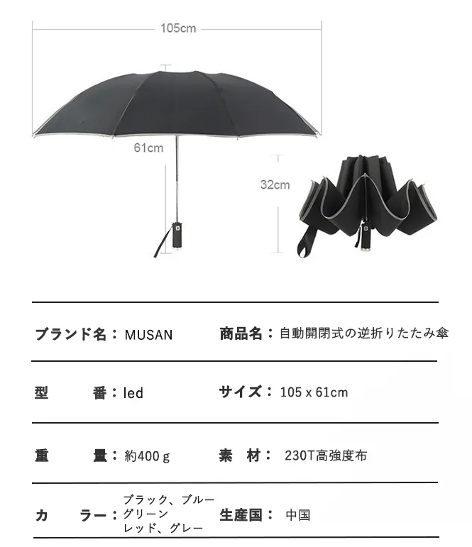 高級折りたたみ傘でも、190Tの密度の生地を採用するのが一般的で、ledは、高い密度210T生地を採用しました。密度が高いほど、加工プロセスが複雑になり、撥水効果も強くなります。