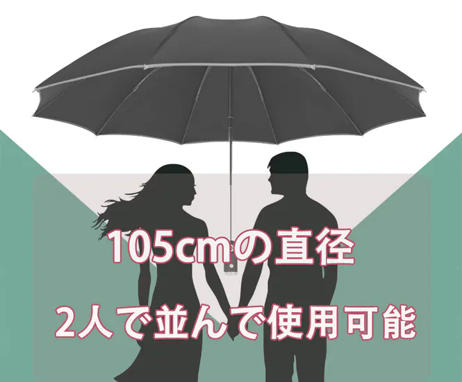 また、2人で並んで使用することも可能なため、パートナーやご家族と相合い傘をして持ち歩きの負担を軽減することも可能です。