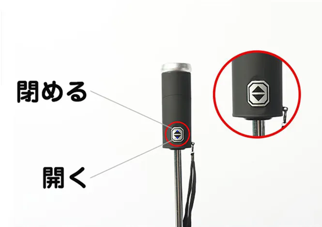 荷物が多いときや急いで傘を開きたいときなどに片手で操作ができて非常に便利です。