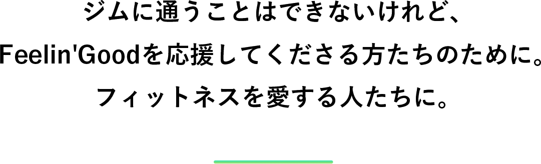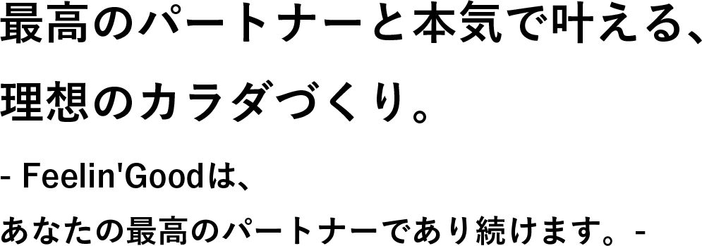 “Feelin'Good”は、お客様一人ひとりのフィットネスライフを包括的にサポートするジムです。トレーニング、マインドフルネス、食事など、私たちは、瞬間的ではなく、継続的なプログラムでお客様それぞれの悩み、目標に真摯に向き合います。