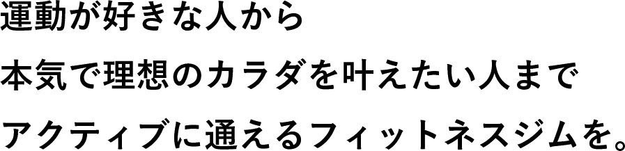 私達は、これからの人生を今より豊かに、そして自分らしく生きるために、いつもお客様の身近にいるジムを提供します。
