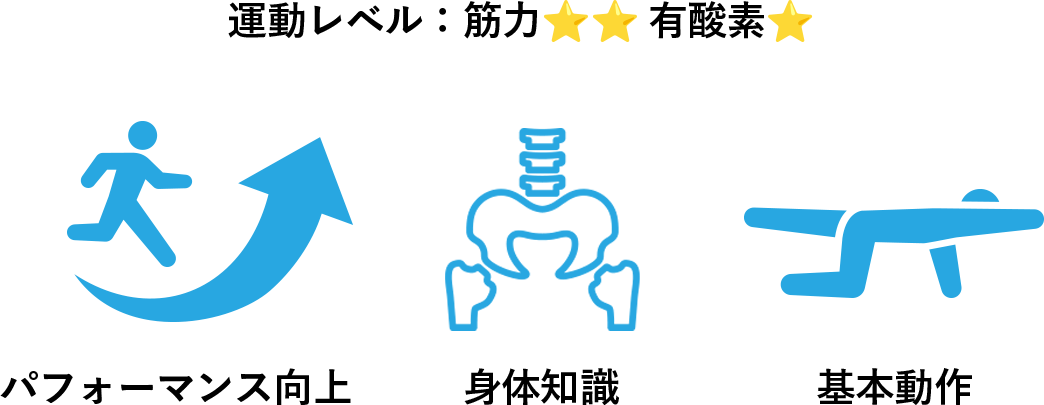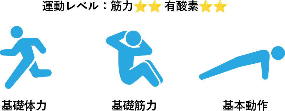 初心者から参加できる自重を中心としたトレーニングプログラム。腹筋やスクワット・腕たせ伏せなどを中心としたトレーニングメニューとなっており、身体の基礎となる筋肉や体幹を安定させ、毎日気持ちよく動ける、美しくしなやかな身体をつくっていきます。