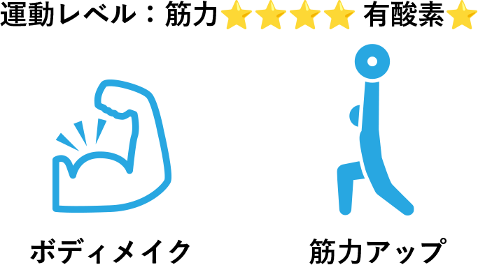 マシンや機材(ケトルベル、ダンベル、 ウォルボールなど)を活用した重量系トレーニングプログラム。プロのトレーナーが適切に機材の使い方をレクチャーするため、安心安全に本格的な身体づくりを行うことができます。