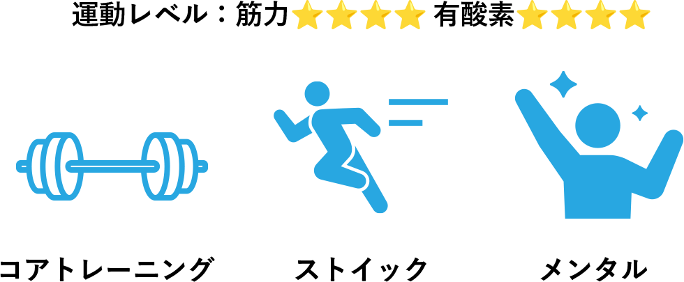 AYA指導のマシンやウエイトを使用したハードコアなプログラム。いつもの身体づくりから、フィジカル面もメンタル面でも大きくレベルアップできるトレーニングです!