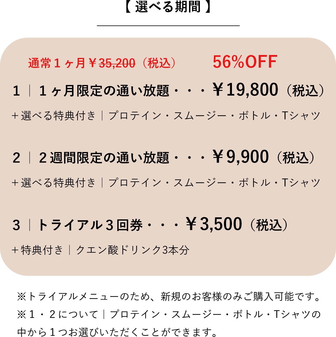 「01トライアルメニュー」をご購入いただいた方は、店頭にてお好きな商品1点をお選びいただけます。