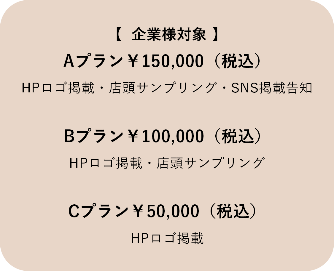 スポンサーシップ枠では、Feelin'Goodオフィシャルホームページで企業様ロゴ掲載や店頭でのサンプリングを行うことができます。加えてSNSでの企業様の宣伝告知も行わせていただきます。