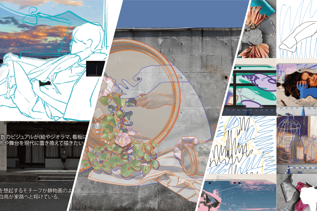 「無いのに有る」「居るのに見えない」ことを絵にできたら、高石ならではの(実はそれは世界中がそうであることも示す)絵になるのではと考えています。高石で描く2枚の壁画を使って表現します。