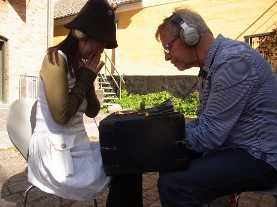 2013/10/18 20:23今、私がやっている『客席ひとつの人形劇場/ぴぴ☆しあたー』は ジャンルとしては【ニー・シアター(膝の劇場)】や【シアター・フォー・ワン(ひとりの為の劇場)】と呼ばれるものになります。 今回デンマークのフェスティバルにて、約20年ほど前に初めて『ニー・シアター』をはじめたドイツのグントゥラ・スタニエスキィーさんにお会いすることができました! 写真どおり、人形遣いとお客さんの膝の上に舞台が乗っています。 まさに、「膝を付け合わせて」の上演です! グントさんの舞台作品『ブレーメンの音楽隊』も観させて頂きましたが、この方の頭の中は一体どうなちゃっているんだろう?という位、アイディアでいっぱい! とっても楽しい舞台でした。 元祖ニー・シアター・マスターのグントさん (ドイツ) と、シアター・フォー・ワンのエキスパート、レンペンパペットシアター (英国) のリズ&ダニエルが何か長いこと話してるなーと思っていたら、最後にグントさんとお食事をした時に、『YUKI☆、近い将来、ヨーロッパでニー・シアターだけを集めたフェスティバルをやるからね!』と言われました。 わぁ、なんて、愉快な夢! レンペンのダニエルさんからは『今回はくだらないシアター・フォー・ワンの新作もってきたから』と言われましたが、これが本当にくだらない^_^;。 しかも、<非常に質の高いくだらさな>で、上演中に思わず膝を叩いて大笑いしてしまいました。 ニー・シアターの奥深さを改めて教えて頂いた旅でした。 もっと見る