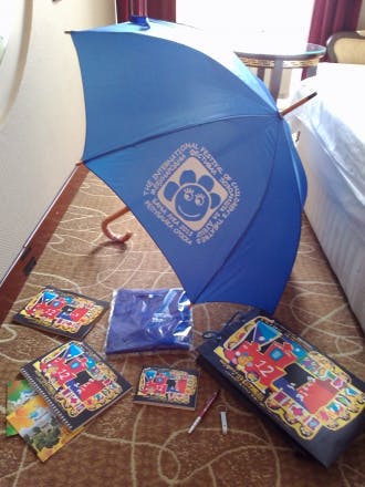 パフォーマーバックという、出演者に記念品が渡されますが、メモ帳とかボールペンとか、Tシャツはよくあるけれど、傘を貰ったのは初めて!