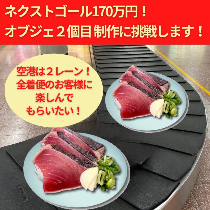そこで、高知龍馬空港の手荷物ターンテーブルは2レーンあり、オブジェ2個を制作し、すべての到着便をご利用のお客様にかつおオブジェをお楽しみいただきたいです!