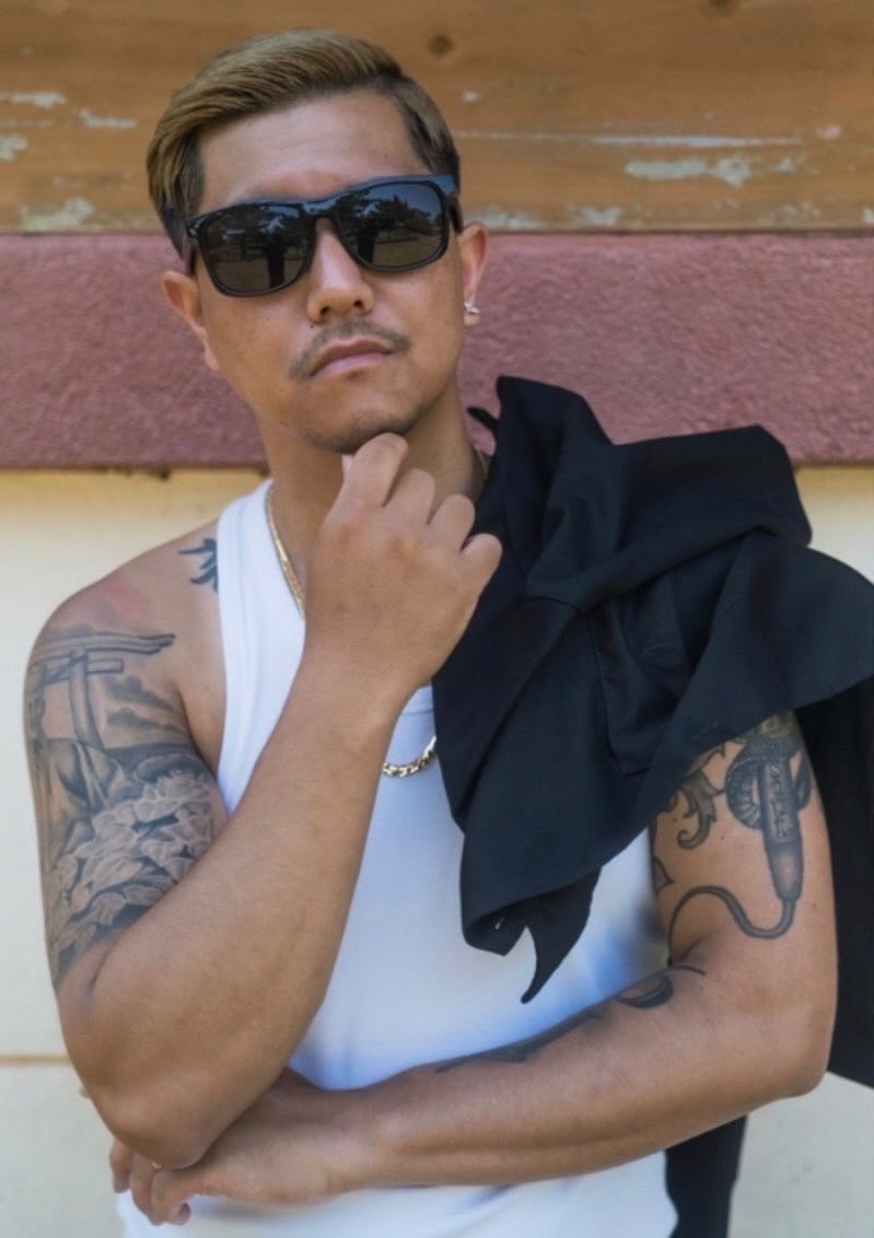↓MODEL: 佐久間龍星(沖縄市美里児童園 出身)現在は、東京を拠点に活動の幅を広げている。