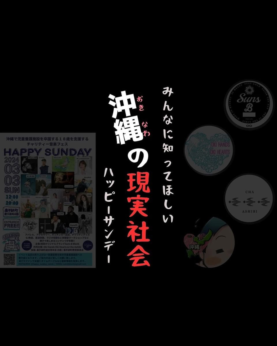 2024/11/29 21:55︎★先行情報公開︎★スタートまでに【いいね】ボタン100件を目指しています。登録のご協力宜しくお願い致します。【クラウドファンディング12月10日公開予定】お気に入り登録をしてお待ち下さい。公開前限定URL: https://camp-fire.jp/projects/803890/preview?token=2wh5xzoj★最新情報公式LINEはこちらからメッセージを受け取るには、公式アカウントを友だち追加してください。イベント当日には、こちらからiPadなども当たる抽選会にも参加できます。クラウドファンディング開催期間2025.12.10〜2026.2.26﹏﹏﹏﹏﹏﹏﹏﹏﹏﹏﹏﹏﹏﹏﹏﹏﹏﹏HAPPY SUNDAY 2025児童養護施設卒園児を支える~沖縄チャリティー音楽フェス~2025.02.23 (SUN) 12:00-20:00PLACE: 嘉手納町兼久海浜公園ENTRANCE FREE!!主催: Suns B Blank後援:嘉手納町 / 嘉手納町教育委員会音楽、アパレル、キッチンカー、DJ教室のような体験型ワークショップなど親子でイベントを楽しめます。本イベントの売り上げから沖縄県内の児童養護施設を退園する児童へ寄付金を贈呈します。クラウドファンディングにも挑戦中です。事前のお気に入り「いいね!」登録が多いほどプロジェクトが成功しやすいと言われています。是非、皆様のご協力よろしくお願い致します。公式HP: https://www.happysunday.websiteInstagram: @happy_sunday_sunsb告知動画 ﹏﹏﹏﹏﹏﹏﹏﹏﹏﹏﹏﹏﹏﹏﹏﹏﹏﹏出演者(順不同)①佐久間龍星②PIEC3 POPPO③Rude-α④WHAT’S UP AKEMI DANCE SCHOOL⑤Grace Aimi⑥OZworld⑦嘉手納シニアヒップホップクルー⑧Make Sum⑨MaveRick⑩Naz Yamada11マンナユウナ12 RITTO13 RYO a.k.a speedmaster 14 AK from INTERCEPTOR15 PRO BMX RIDER 漢那史哉 16 MC よなみねのぞみ17 DJ KFIVE【後援】嘉手納町 / 嘉手納町教育委員会【Special Thanks】•株式会社ラクセスイノベーション•株式会社グローバルアイランド•株式会社Islandgate•アイトラ株式会社•有限会社オフィス赤嶺•うみとたいよう•イシガントゥ株式会社•株式会社D2T•合同会社レック•エスリンク株式会社•株式会社Green沖縄•社労士オフィスHana•ディクシア合同会社•株式会社シーサー不動産•税理士法人さくらパートナーズ•有限会社ISA#ozworld #沖縄 #嘉手納町 #happysunday #おすすめ #fyp #沖縄イベント #okinawa===========琉球オリジナルブランドSuns B BlankInstagram & X : @suns_b_blankFacebookファンページ: Suns B Blank もっと見る