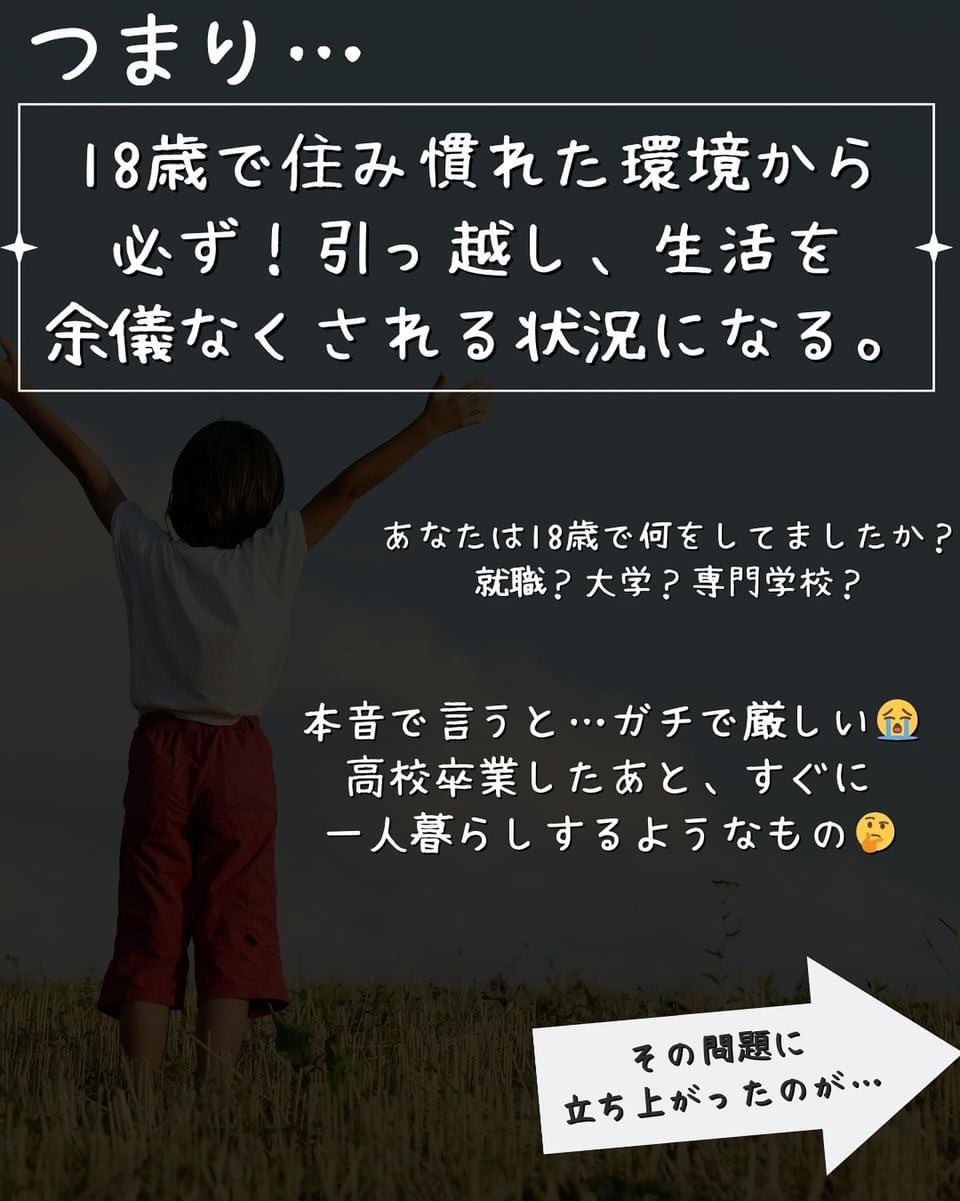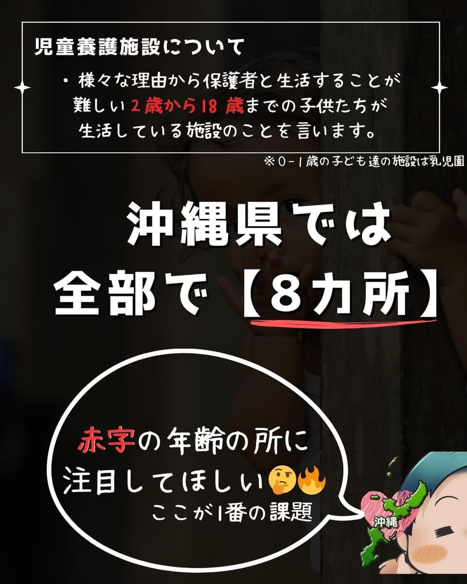 沖縄県内には合計8箇所の児童養護施設があり、様々な理由から保護者と生活することが難しい2歳から18 歳までの子供たちが生活しています。更にその下の0〜1歳の子供達のために乳児園という施設もあります。全国的にみても、沖縄県はこのような施設の数が多いそうです。しかし、このような話題はメディアなどに取り上げられることはあまりなく、社会保障制度も少ないそうです。このような現状でも、18歳になると必ず園を出て生活を余儀なくされる状況があります。私たちは、その卒園をする子供たちの力になりたいという想いがあります。
