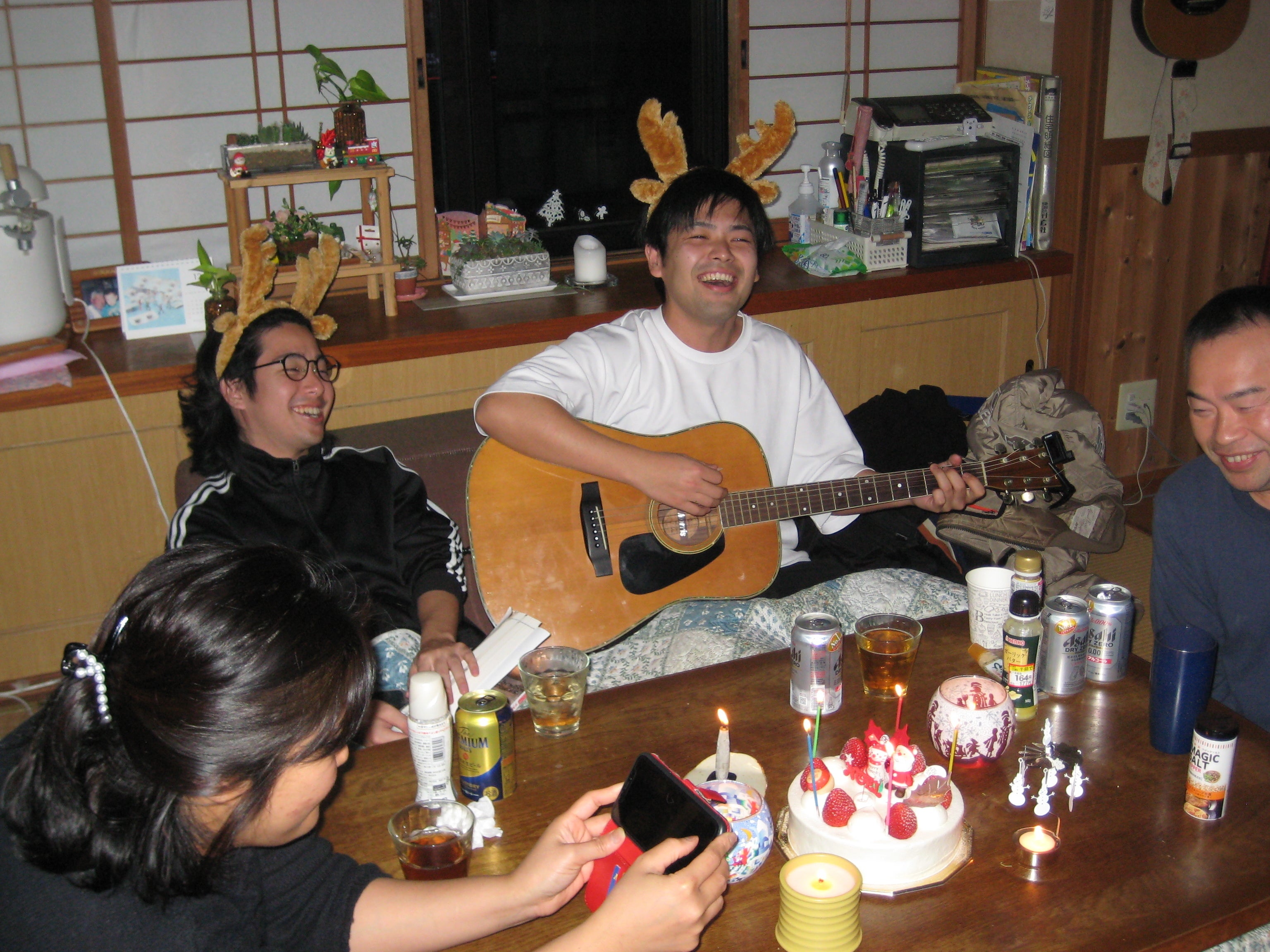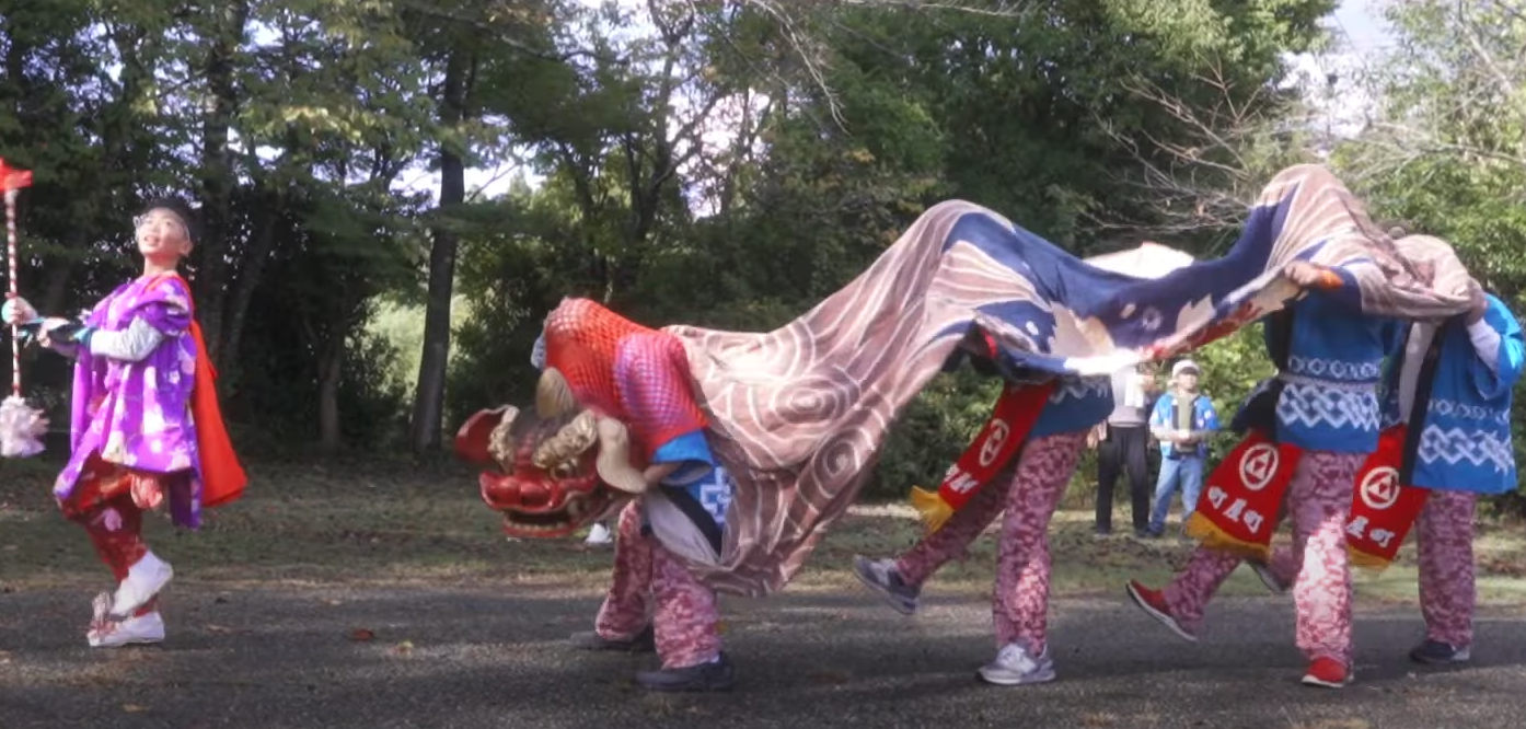 地域の豊作を祝う「秋祭」に参加させていただき行った獅子舞の様子近所に住む仲良しな家族にクリスマス会に呼んでいただた時の様子