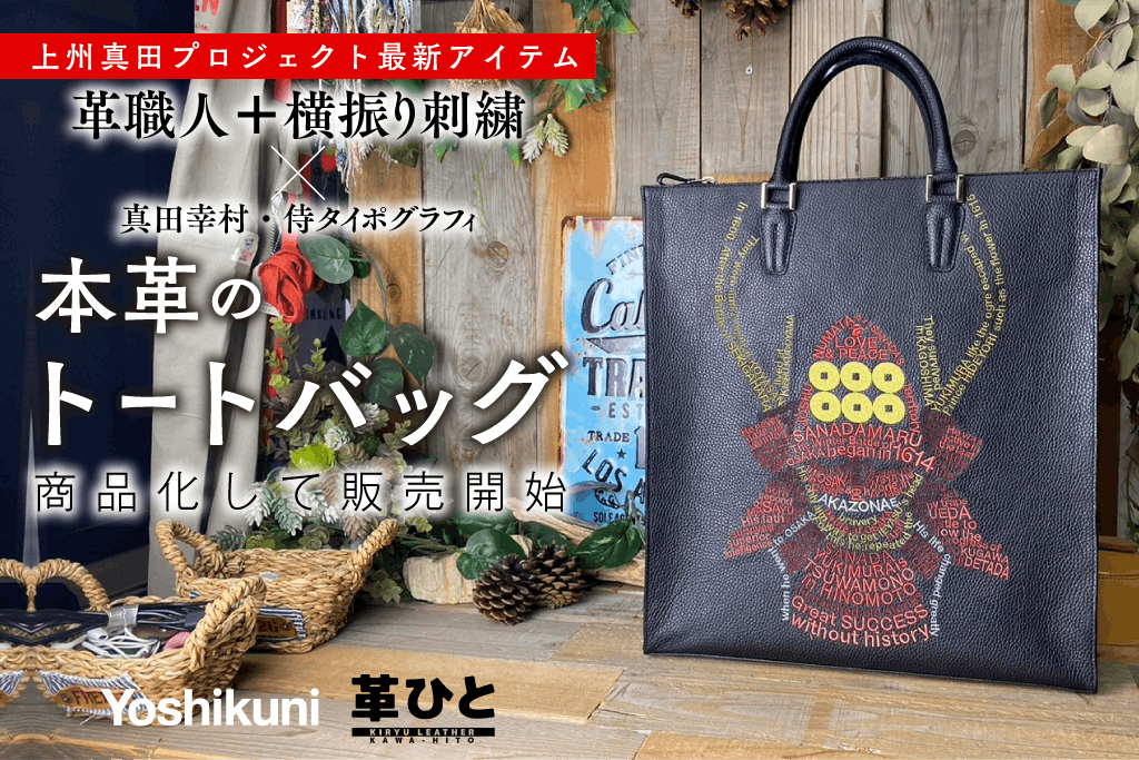 今回、群馬の横振り刺繍で表現した真田幸村による革のトートバッグを、桐生の革職人・平塚貴司さんに制作していただき、群馬の伝統文化を後世に受け継ぐための新たな一歩を踏み出します。