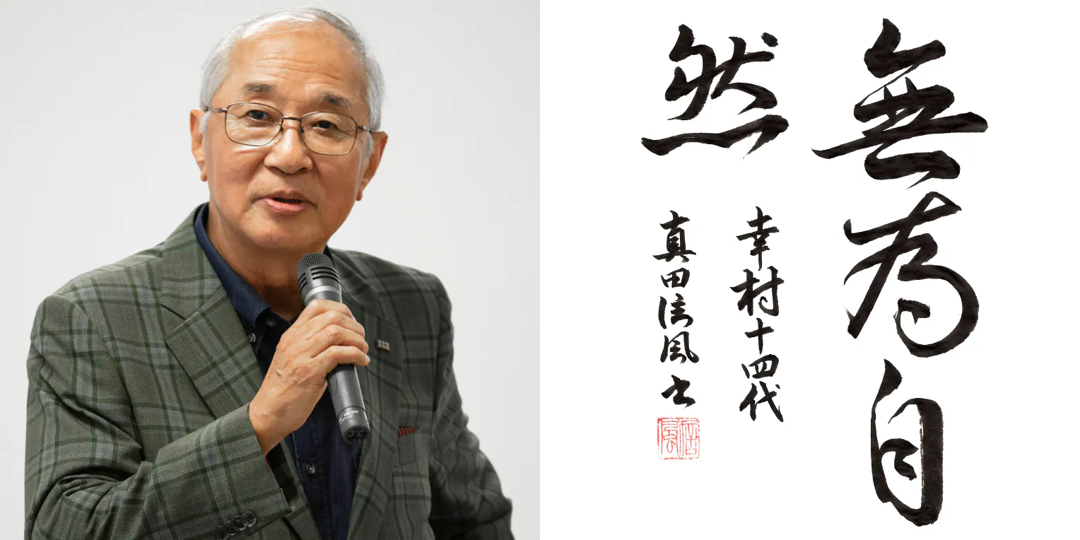真田氏は、私たちの最新プロジェクト、上州真田プロジェクトに協力してくだささり、直筆の書「無為自然」を6枚も提供してくださいました。