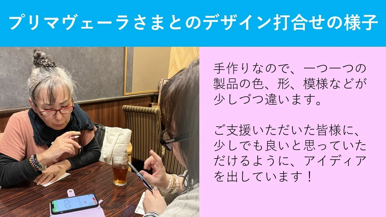手作りなので、一つ一つの印象に違いがあることが魅力な商品ですが、お客様からの評判がよかったデザインなどを振り返っていると、また新しいアイディアが生まれて来ます!