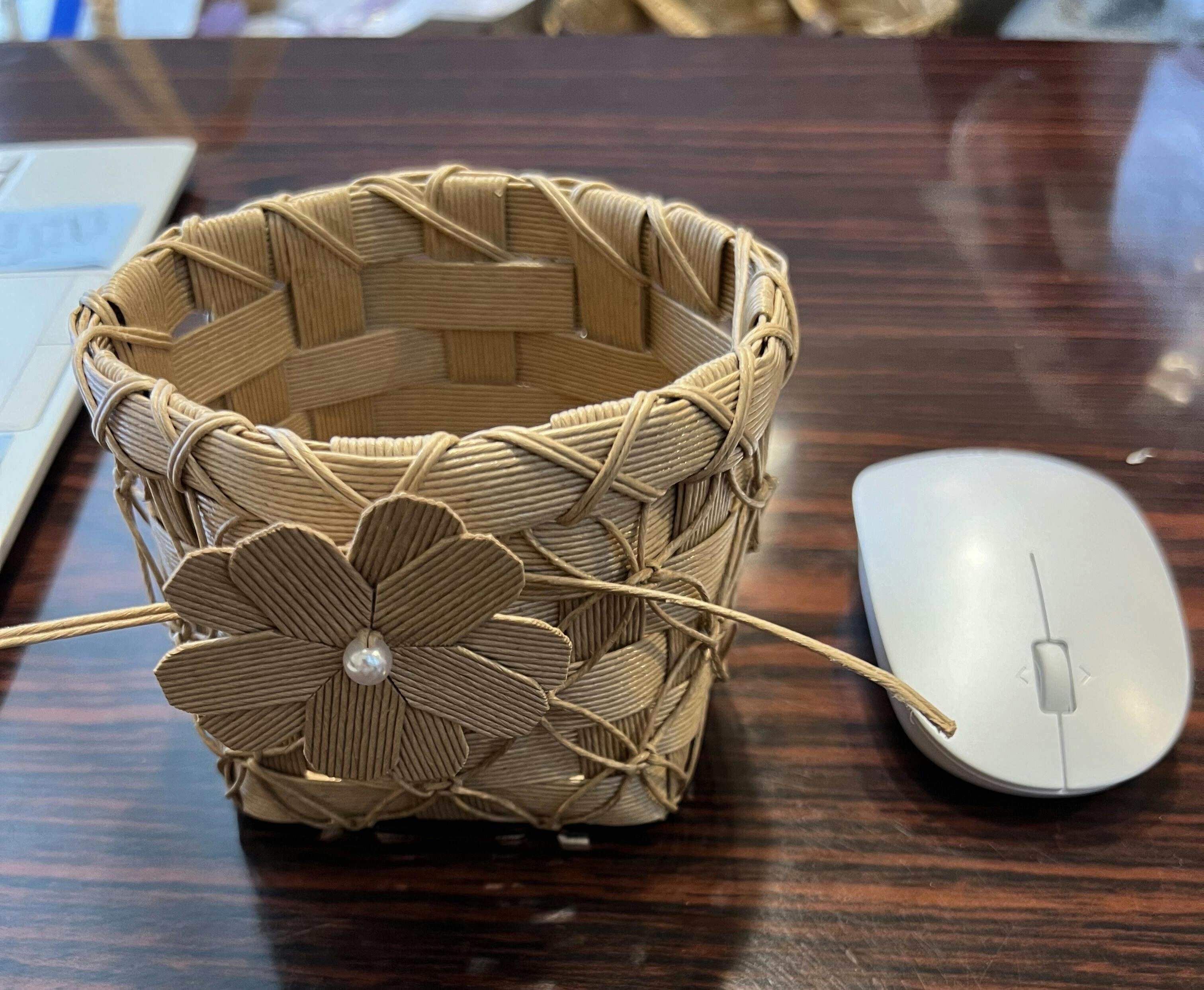 例えば、マウス、付箋、ノリなど、オフィスワークの必需品を無造作に放り込んでおくだけで、お洒落な雰囲気になります。