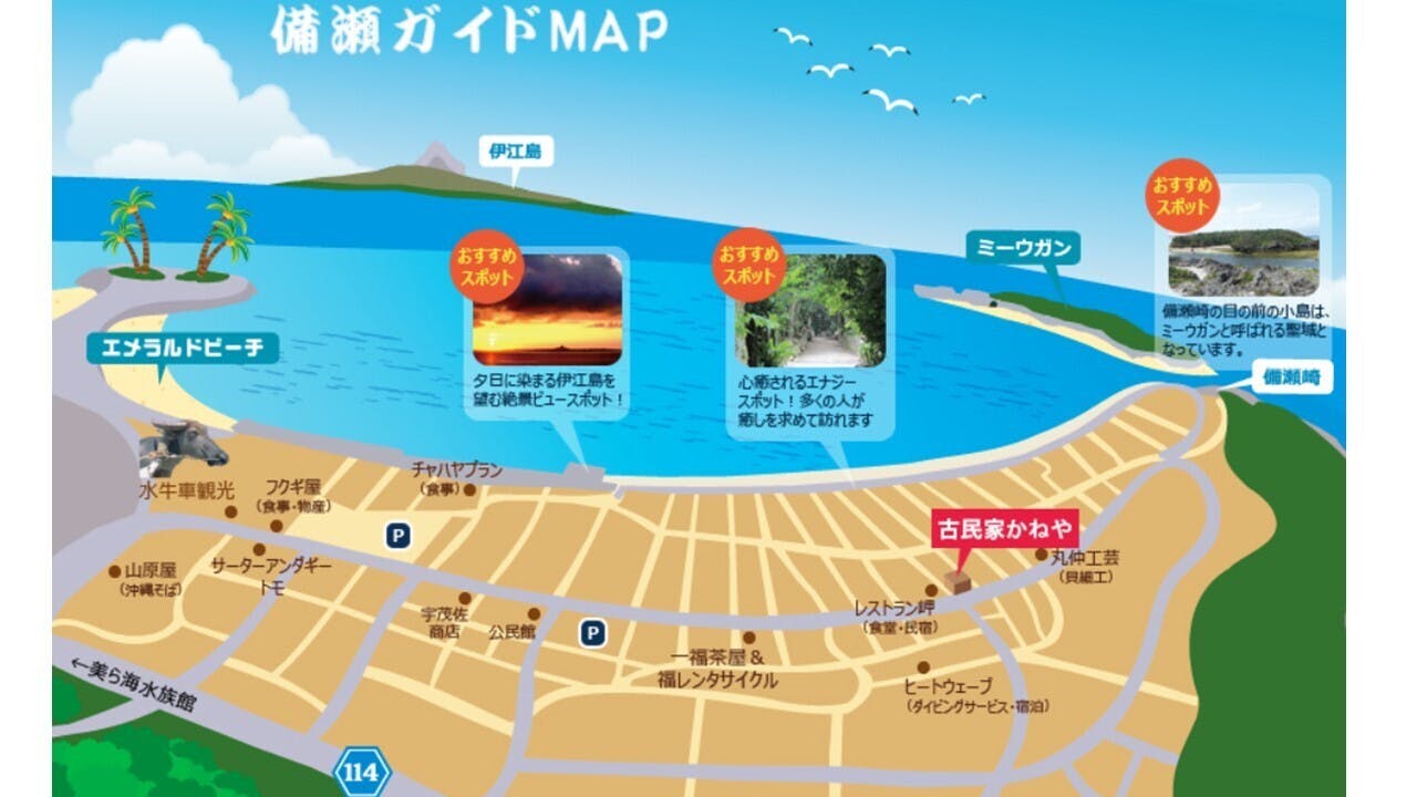 フクギ並木に囲まれた集落にあり、周辺にはお勧めの観光スポットもたくさんあります。