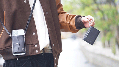chocoZAP(ちょこざっぷ)等で代表される24時間ジムでは、普段着のままでトレーニングを行うスタイルが増えてきてます。ジム内の簡易的ロッカーでは、貴重品やスマホを預けることができず常に持ち歩く必要がありますが、「ショルダースマホ財布」なら肌身離さずにスマホ・財布を一緒に管理ができちゃいます♪