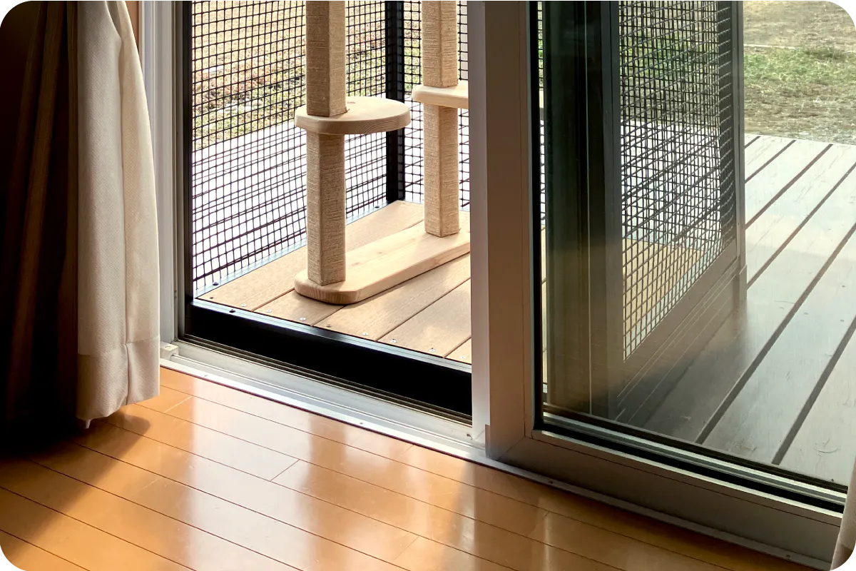 また、キャティオ内を掃除する際にもオプション窓があると、ネコちゃんに室内で待機してもらい、飼い主様が外と行き来できて便利です。