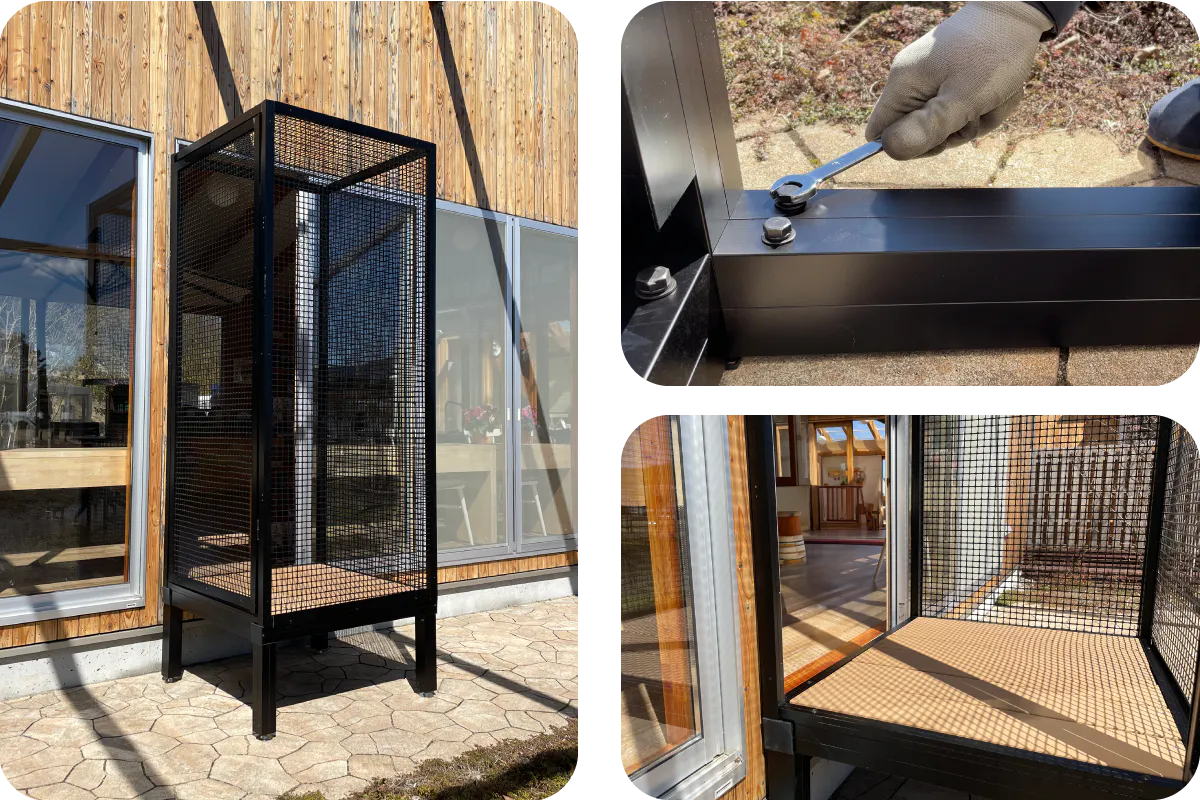 「こもれびキャティオ」は組立てられるセットになっているので、ご自身で設置していただけます。また、組立方法もとてもシンプルです。