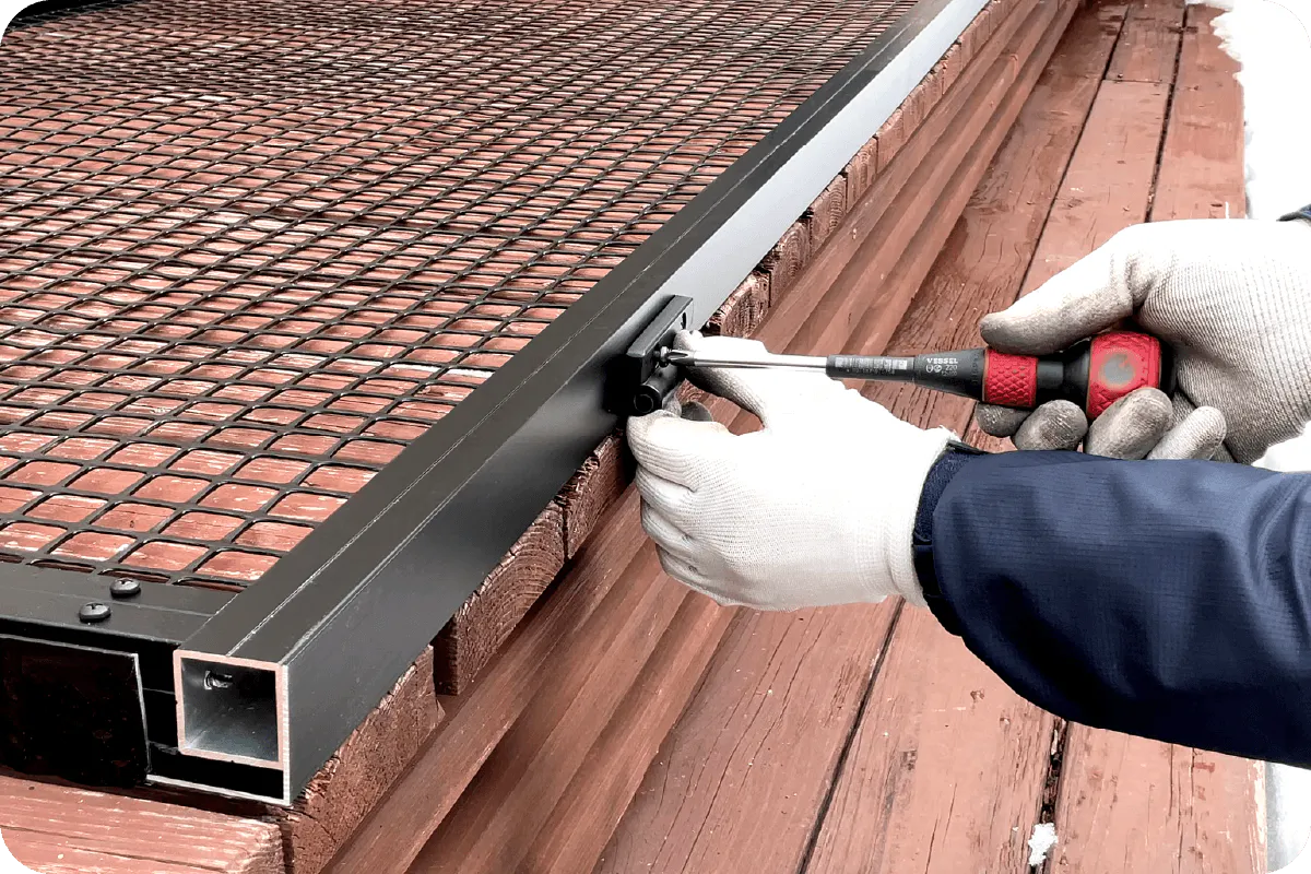 プラスチックダンボールなどで家屋との隙間部分を埋めてください。固定方法はインシュロックなどをご使用ください。
