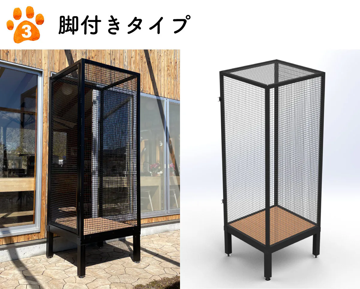 設置はウッドデッキなど窓から段差がない床に設置することを基本としていますが、脚付きタイプはキャティオの床上面を45cmの高さにすることができます。