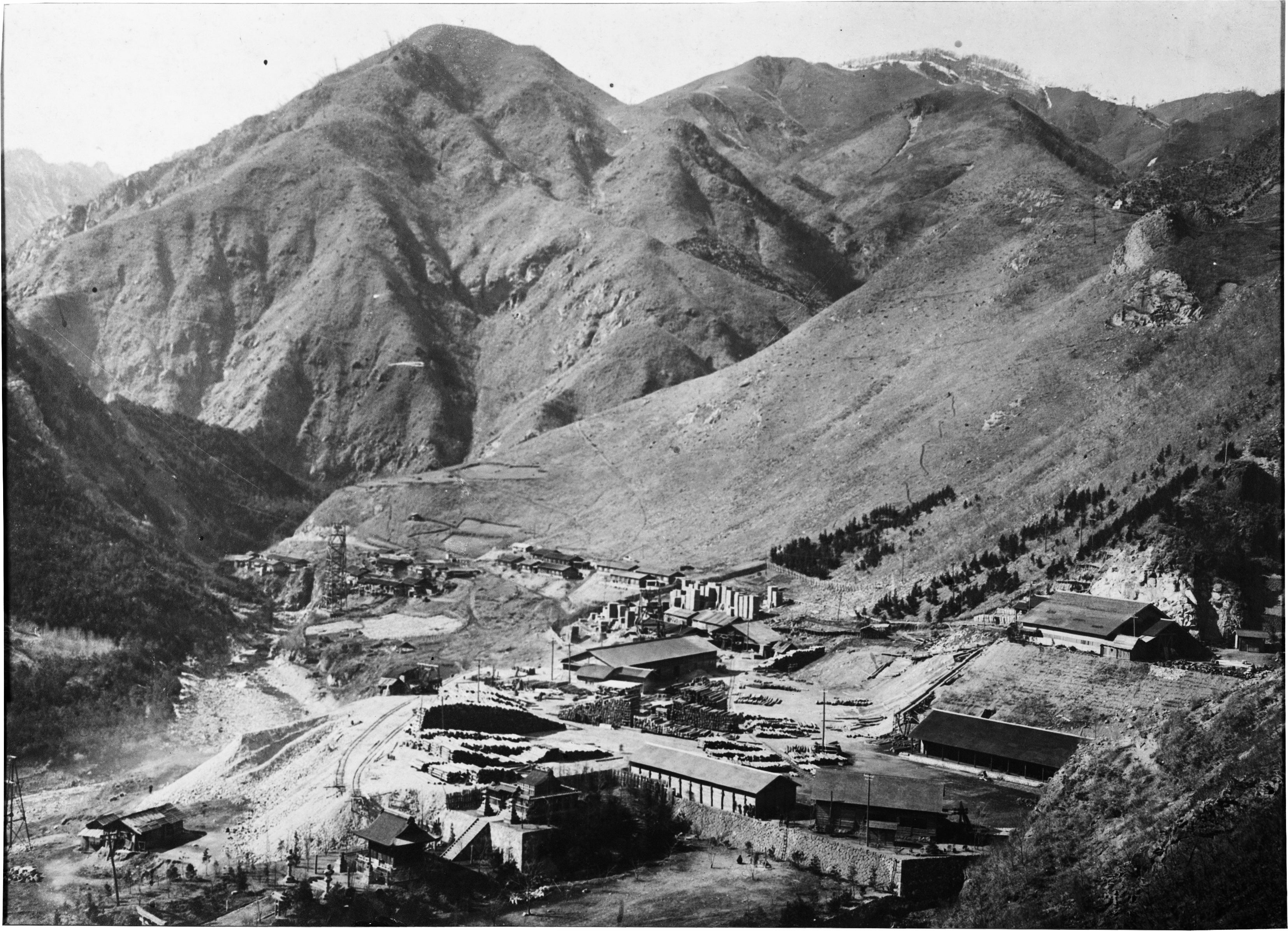 足尾銅山では、西洋の機械や炉を動かすための燃料や、3万8000人が生活するための煮炊きや暖を取るため、総延長1234㎞に及ぶ坑道を支える支柱に必要な木材を確保するために大規模な森林伐採が行われました。さらに、明治20年に起きた大規模な山火事や、銅の産銅過程で発生する亜硫酸ガスが山を蝕むなどの影響により、足尾の山々は次第に荒廃していきました。その結果、足尾銅山周辺の山々は禿山と呼ばれるようになりました。