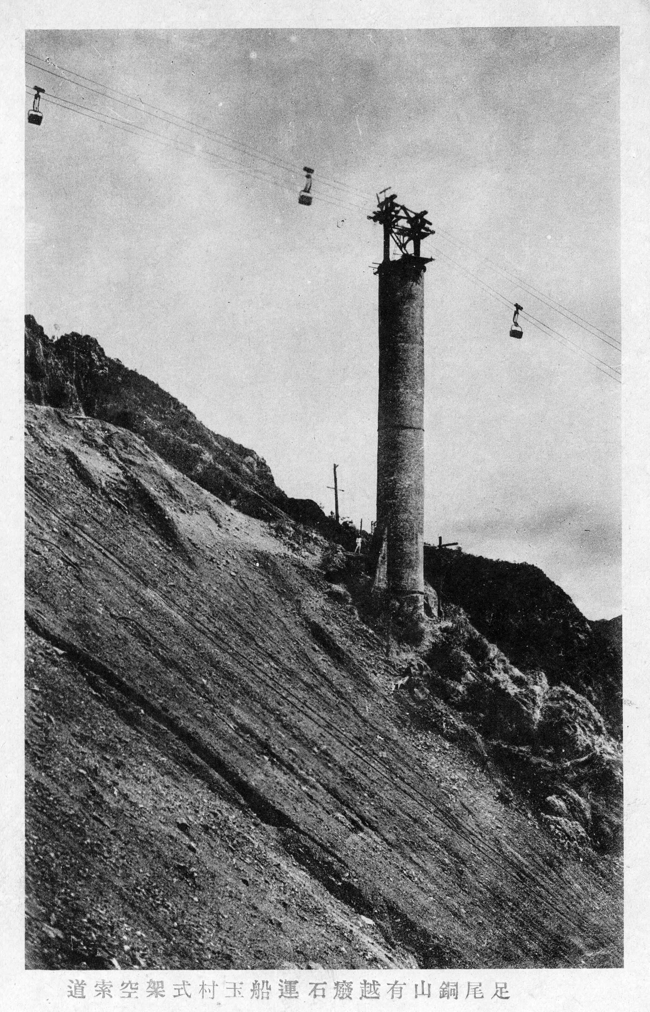 TOPの写真は日本で初めて「架空索道」(ロープウェイ)が明治23年(1890)に導入され、明治39年には足尾で国産化されています。(写真は大正期撮影 撮影者:小野崎一徳)