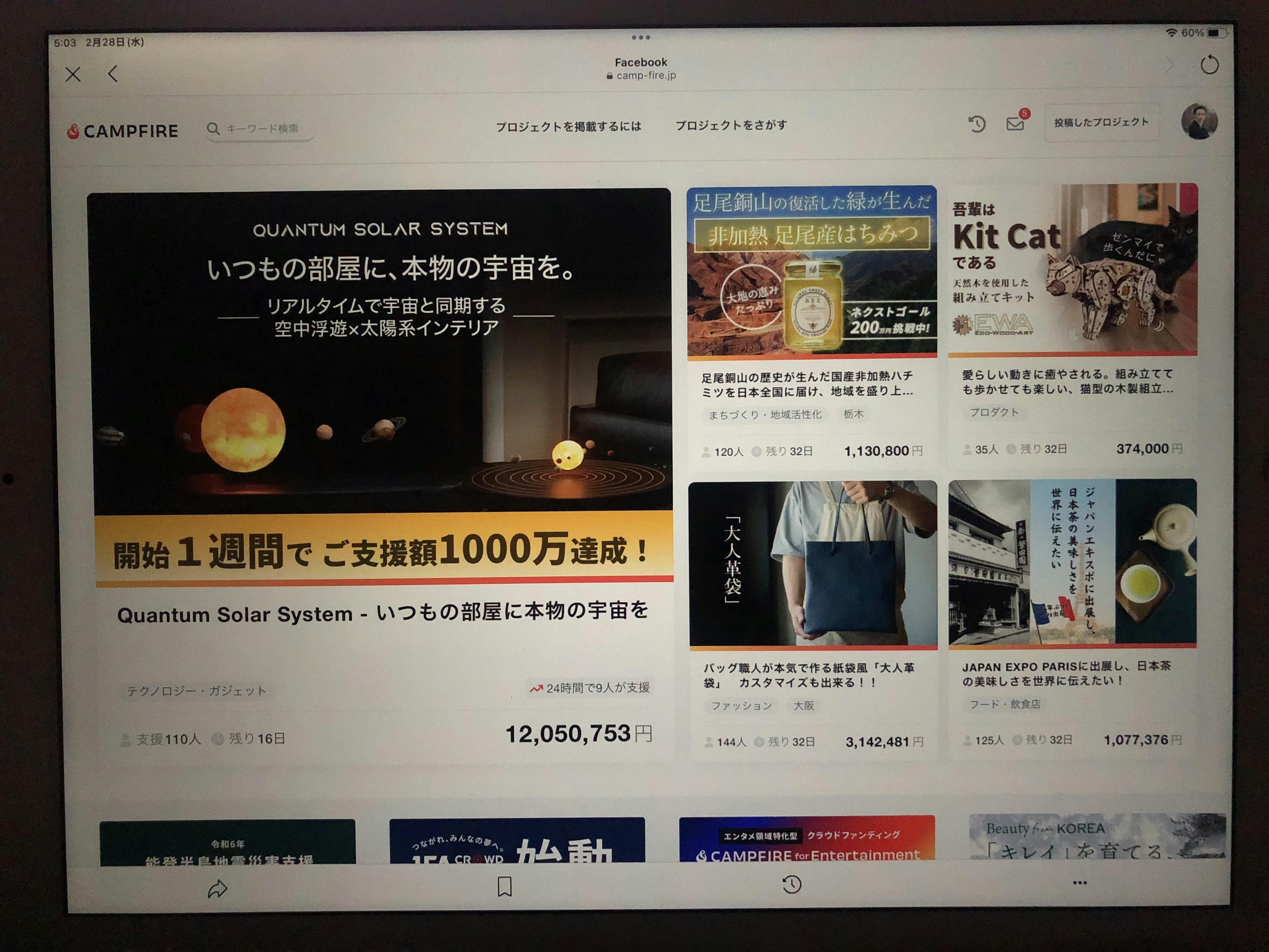 クラウドファンディング campfireのtopにアップされました!