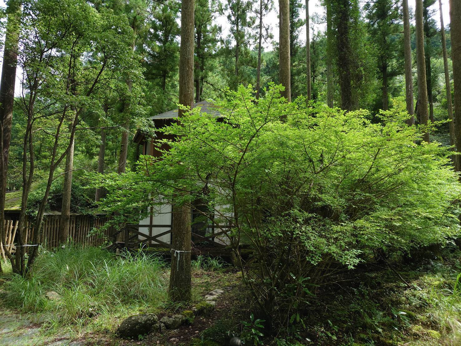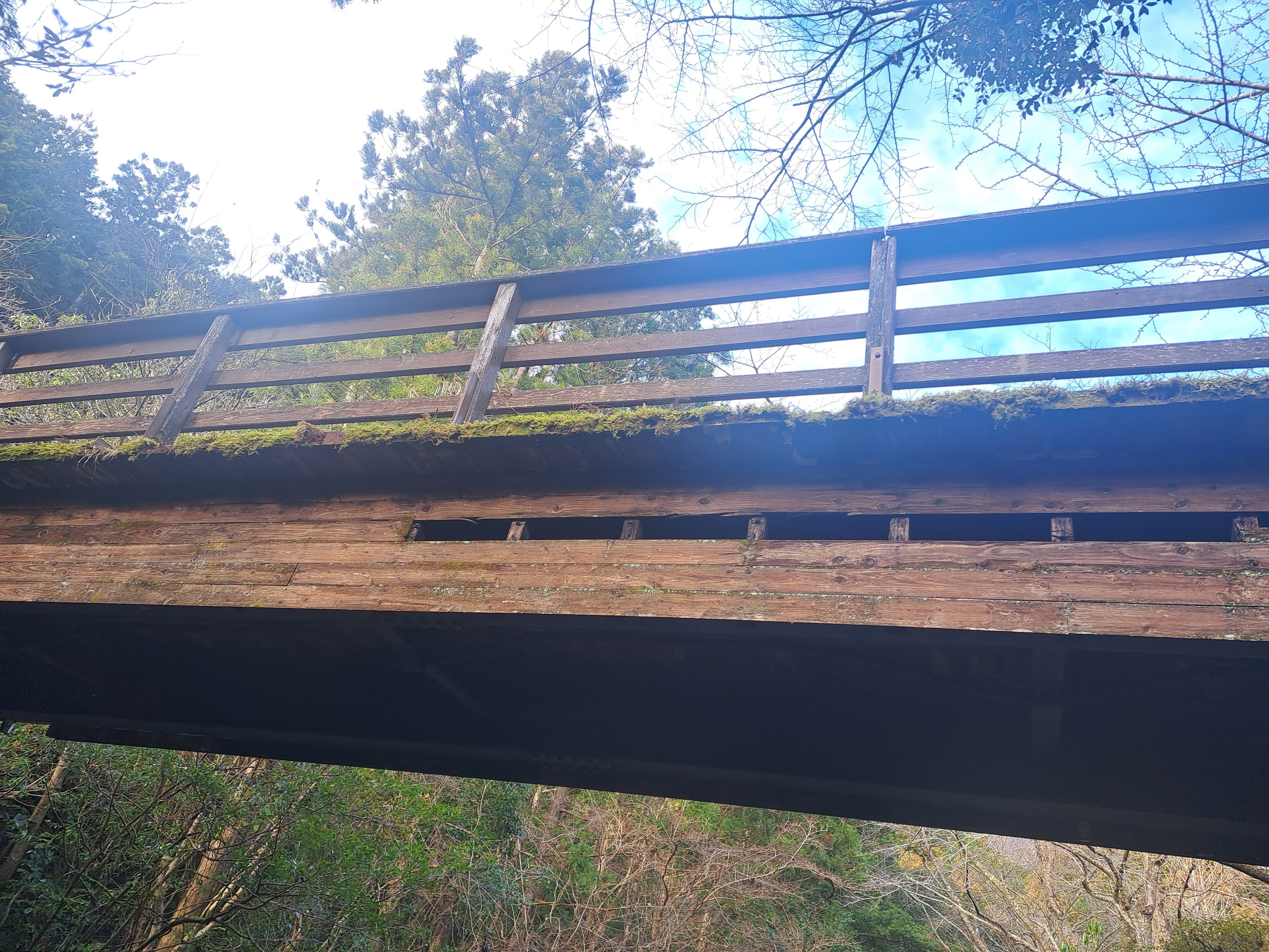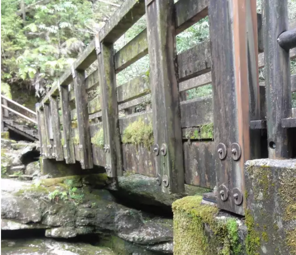 受付へと続くこの橋は、まずお客様が最初に足を踏み入れる場所となり、この橋を渡り受付へ歩みを進めるうちに非現実の世界へと誘うということを役割があります。整備期間中にさまざまな方の意見をいただき、その中に「この橋の苔や木の風合いなど現在の雰囲気は、まるで『時が止まった』ようで日本アニメに出てくる昔ながらの幻想的な雰囲気があり、このキャンプ場の全体の雰囲気を表すのにとっても貴重」というお声をたくさんいただきました。しかし、橋としての強度は無く、現在は泣く泣く通行・使用禁止となっております。