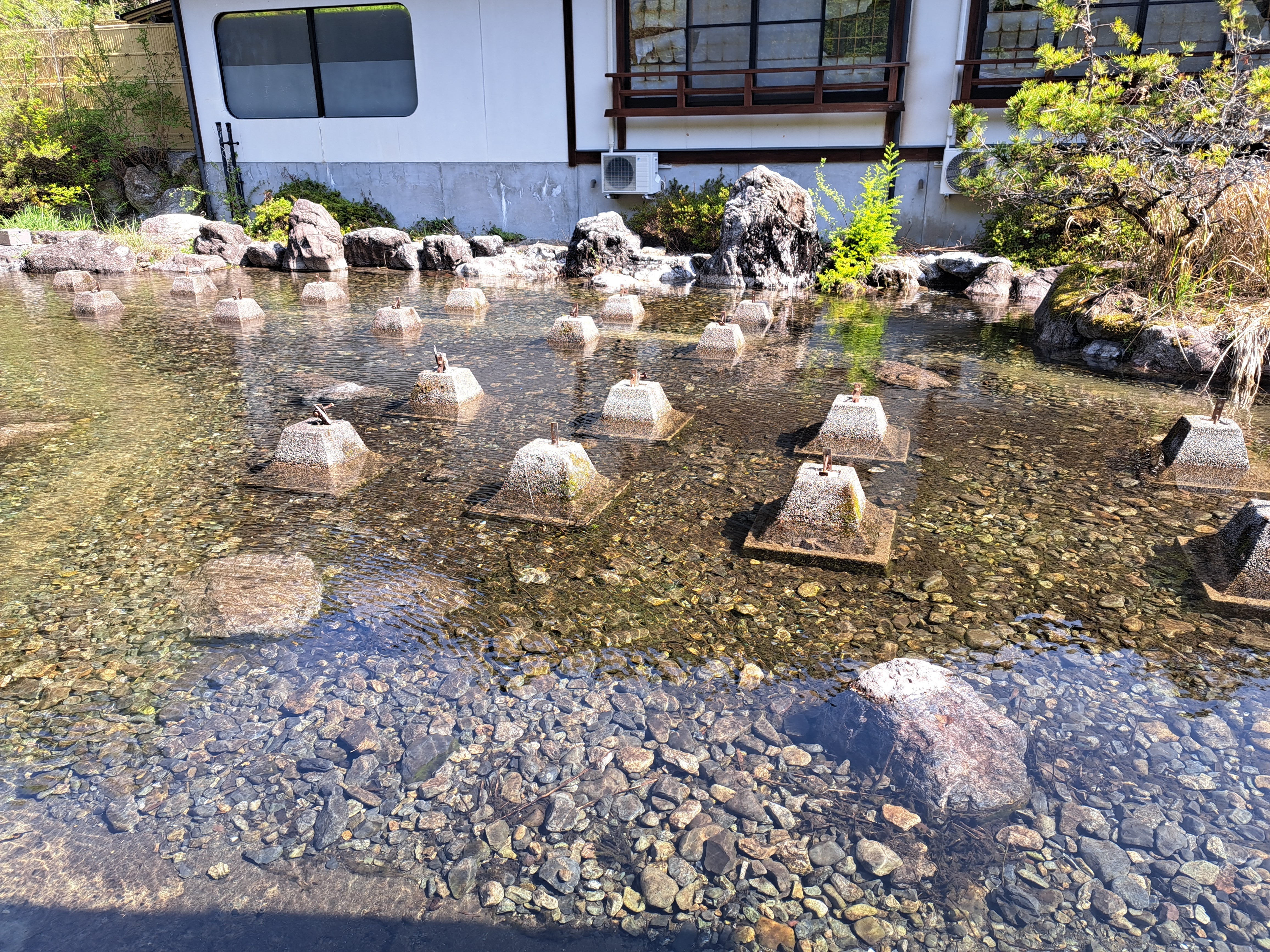 私たちが作っているキャンプ場は以前グリーンパークという日本庭園を基調としたホテル・旅館施設の運営がされていた町営施設でした。四季を楽しめるように季節の木々花々が植えられ、周囲には清流があり、自然豊かな環境でゆったりと過ごしていただけるホテル・旅館施設でしが、閉館後20年以上そのままに放置された場所となっていました。