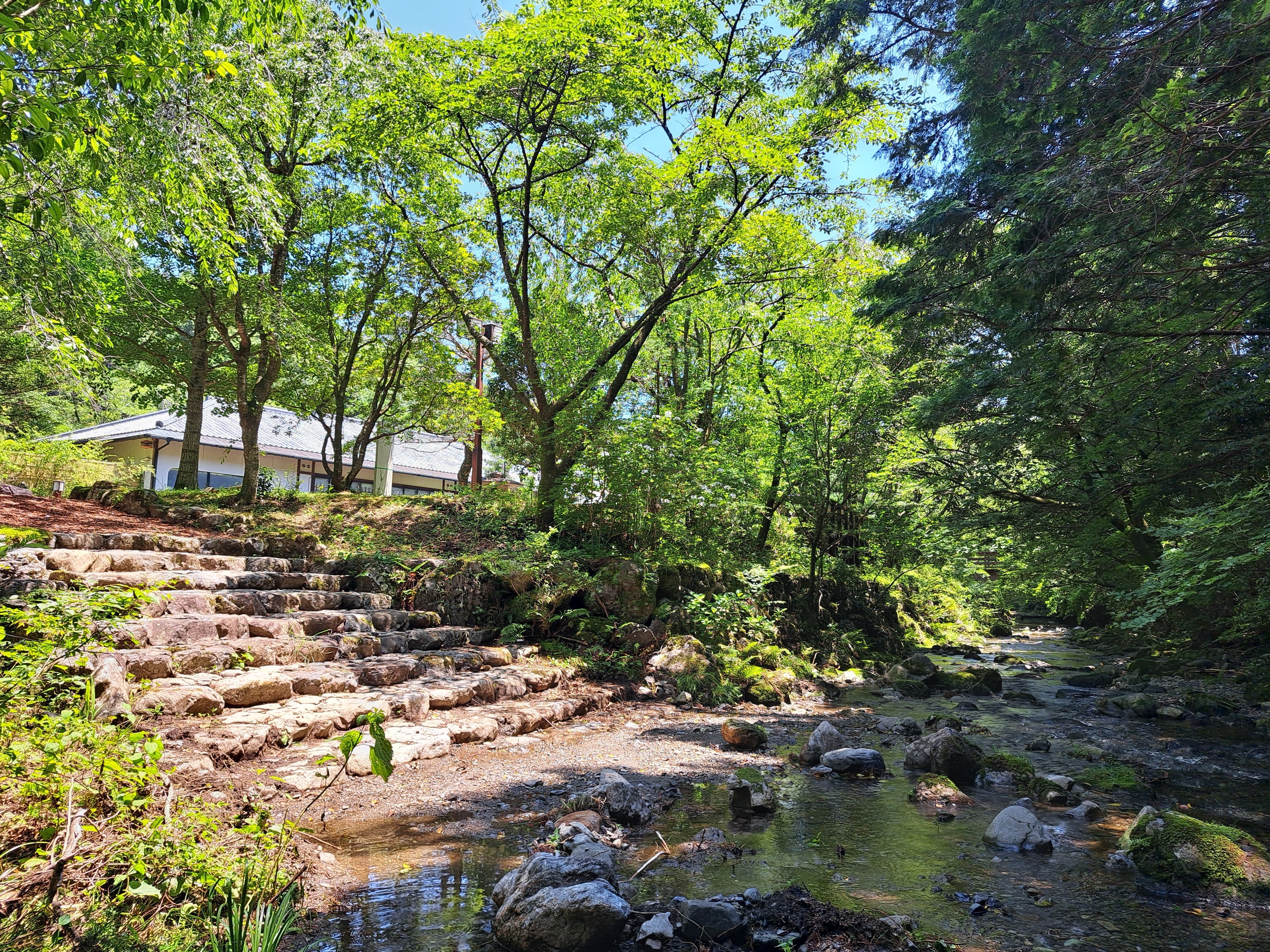 コテージにはトイレ・シャワーがそれぞれあり、川遊びへのアクセスも良好です。