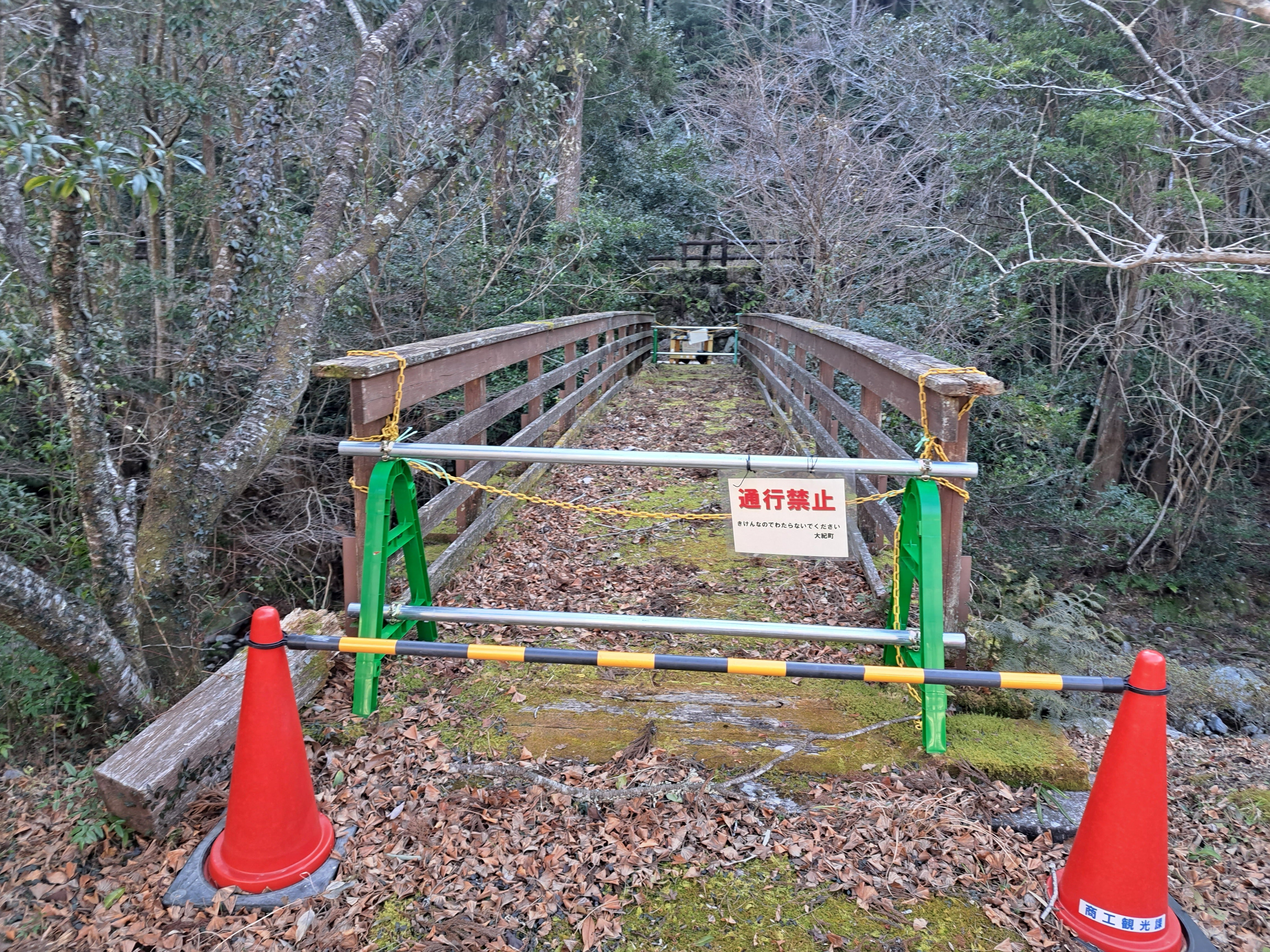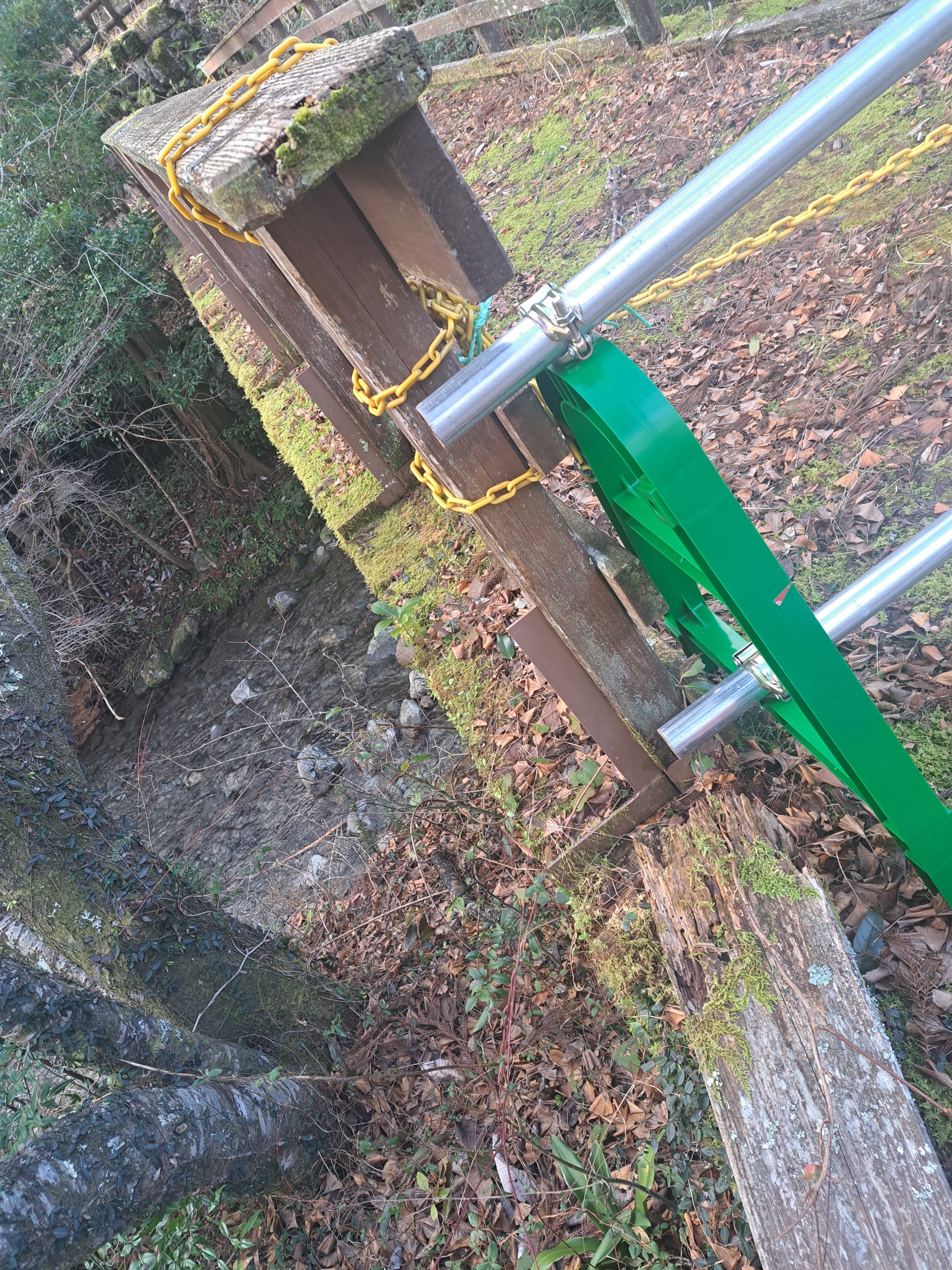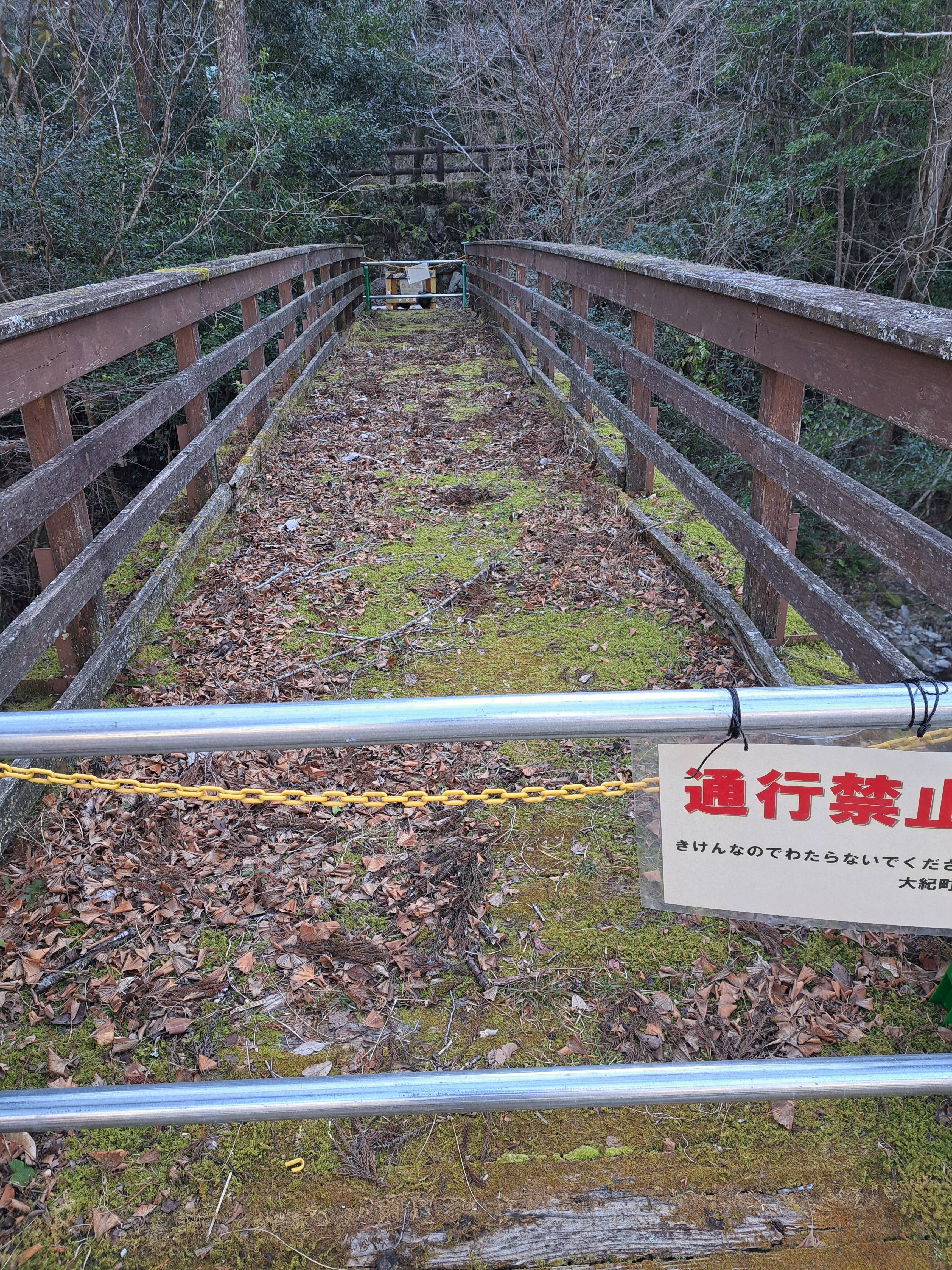 オープンを迎える四季の森キャンプ場ですが、管理棟へと続く入口の橋はまだ荒れ果てたままとなっています。