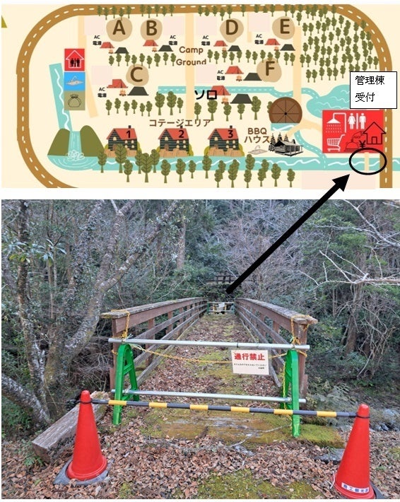 さらに、管理棟付近にあるこの橋を修復することで、受付への動線が良くなりチェックインから各コテージや各テントサイトへの入場、そしてチェックアウトまでお客様に快適に過ごしていただけるようになります。