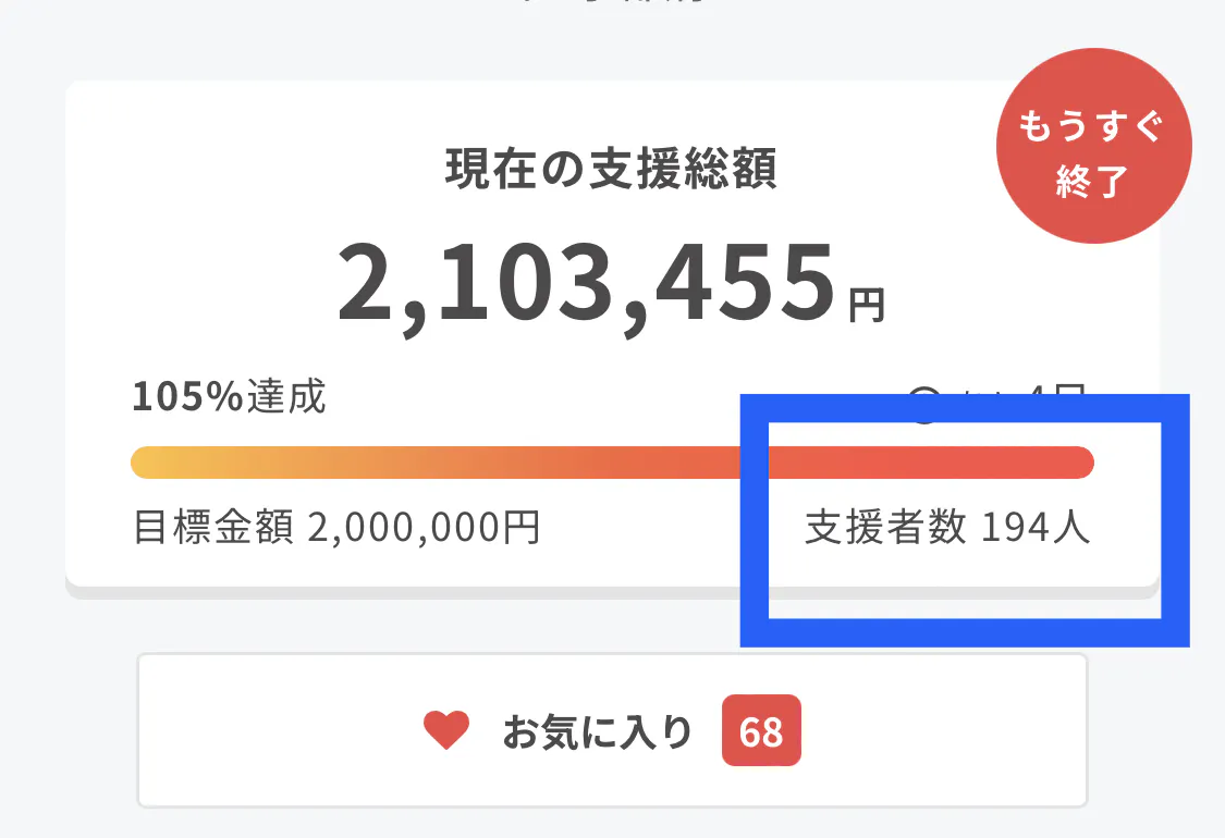 後6人で支援者数200人となります!