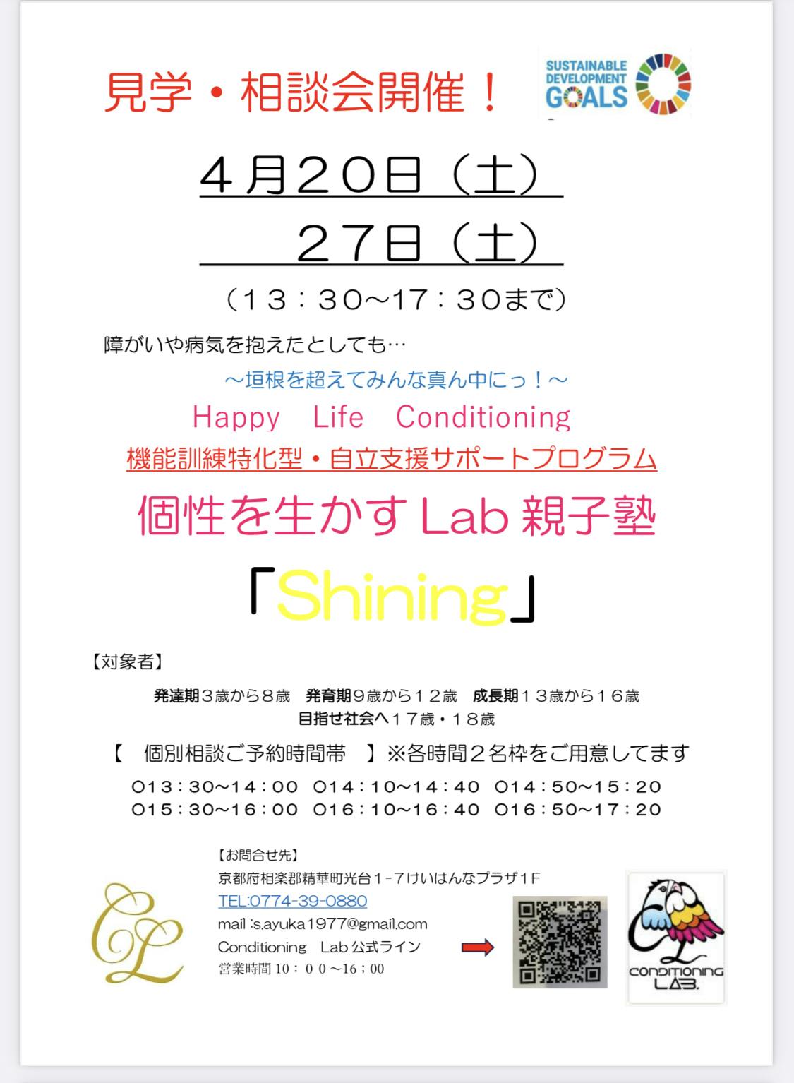 さて、クラウドファンディングも終わり早々ですが、親子塾Shineの相談会をスタートさせます!