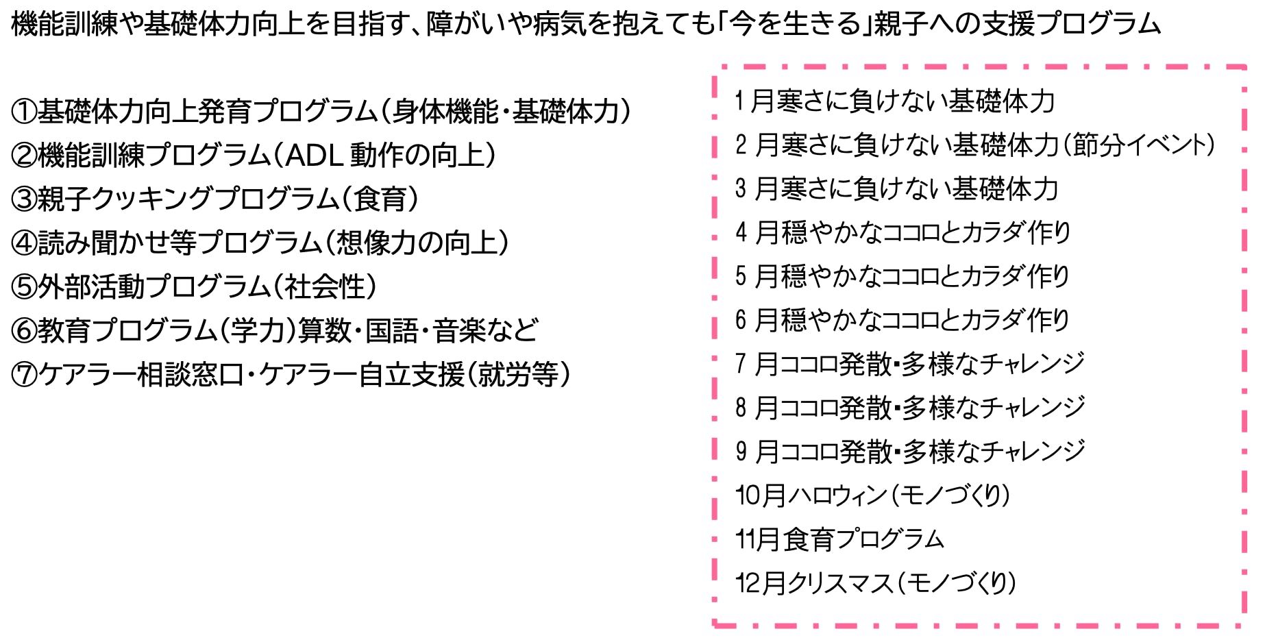 具体的には、発育・教育・食育の面を重視したプログラムを実施予定。