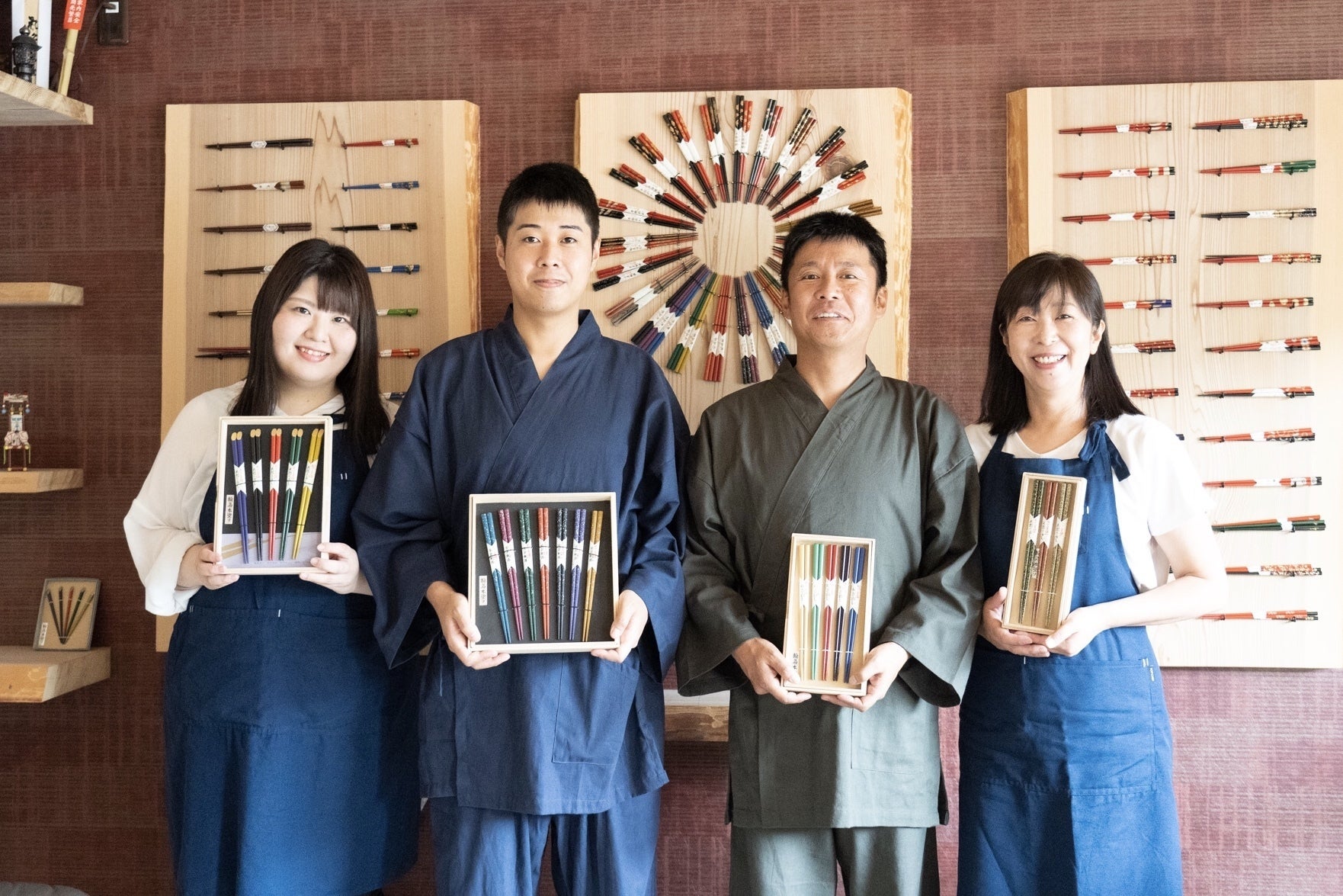 岩多箸店は岩多家4人と職人さん、従業員さんで親切・丁寧に真面目にコツコツと箸づくりをしてきました。