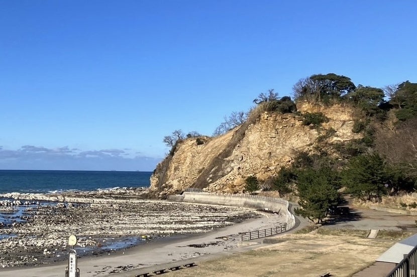 地震による隆起で港は使えなくなりました。変わってしまった海。(袖ヶ浜海水浴場)