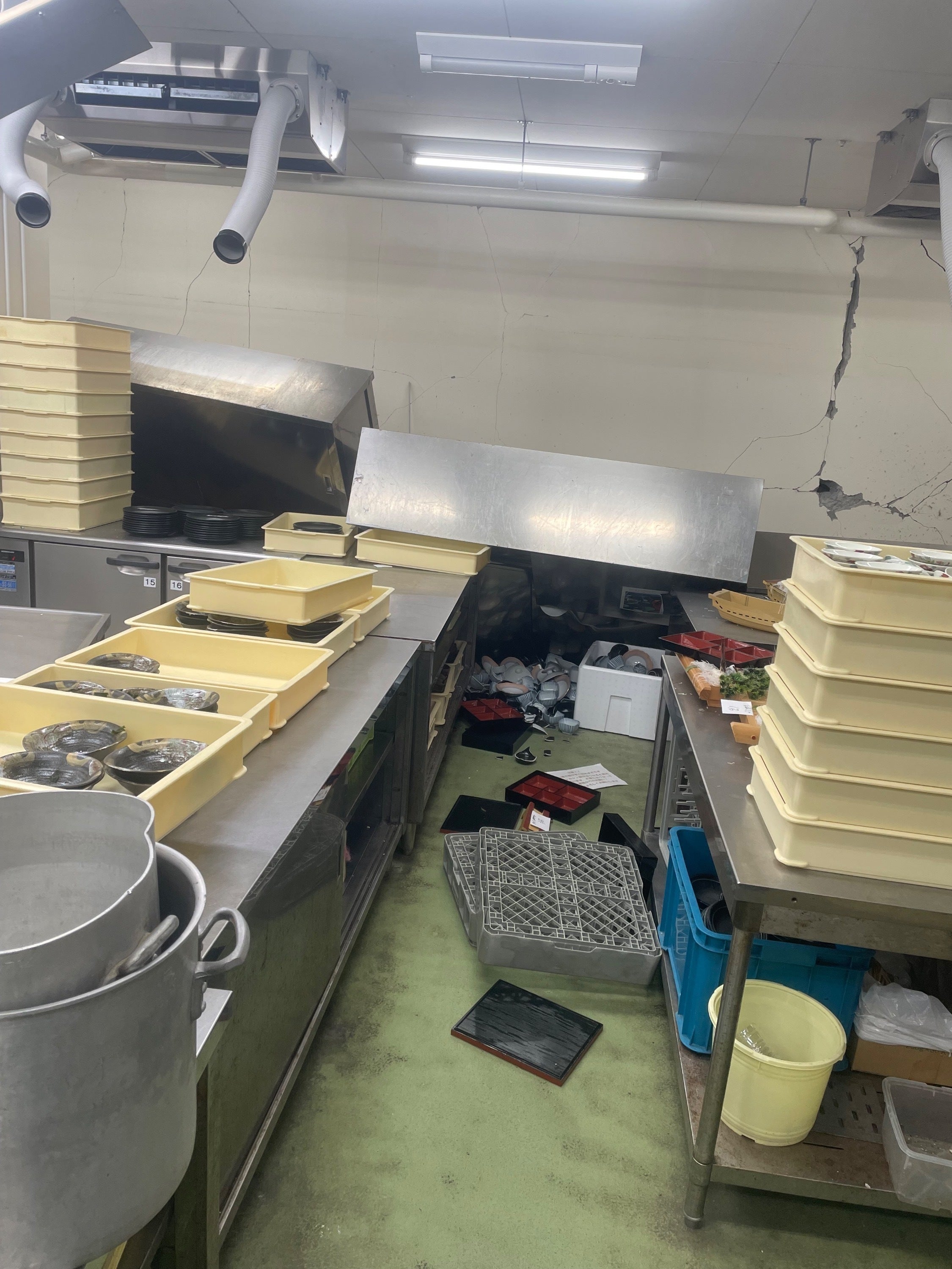 現在、復旧作業をできる事から進めておりますが、建物や周辺地域、インフラ設備等が甚大な被害を受けており、営業再開の目途が立っておりません。