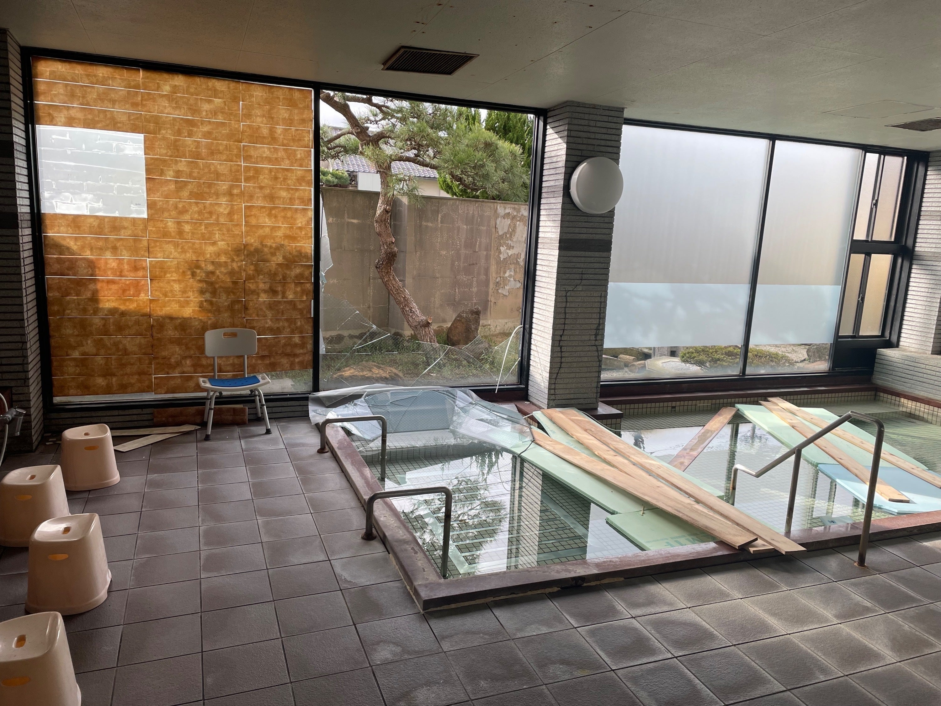 現在、復旧作業をできる事から進めておりますが、建物や周辺地域、インフラ設備等が甚大な被害を受けており、営業再開の目途が立っておりません。