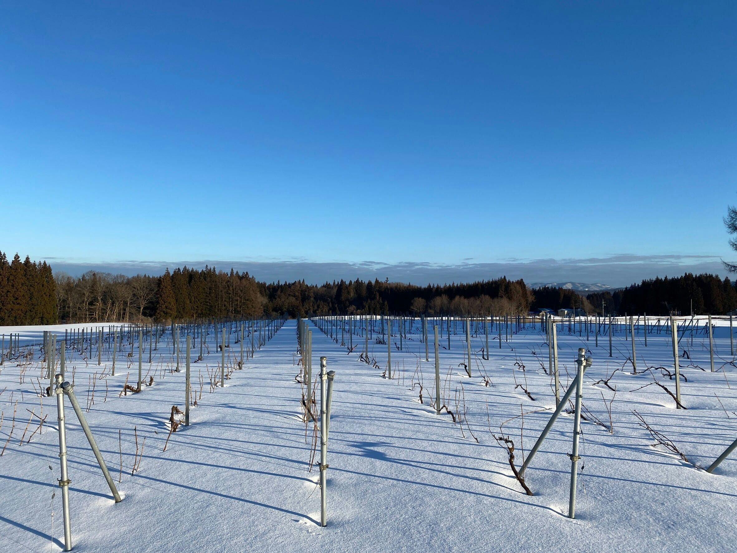雪の中は-1度以下になりにくいのでブドウにとってはお布団のようなものです。