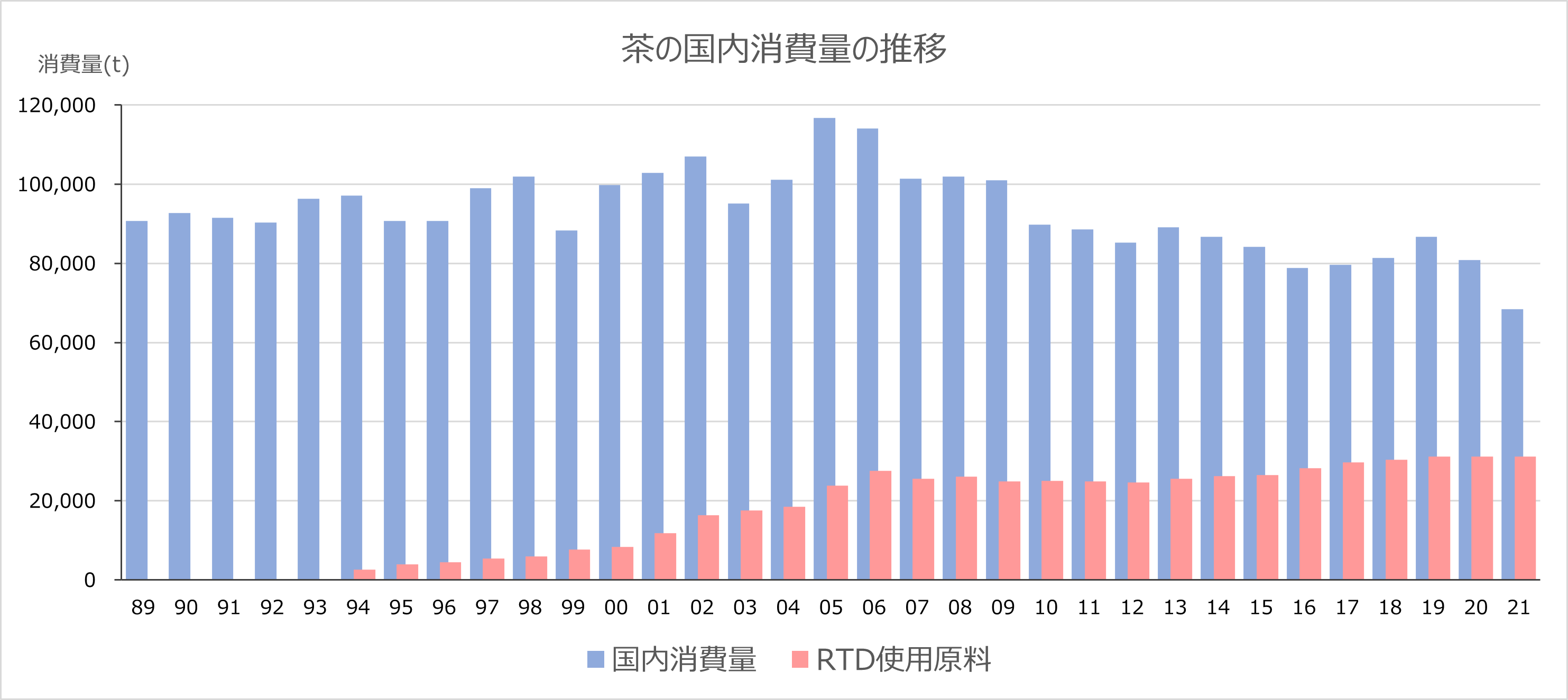 「急須で淹れるお茶(グラフ水色部分)」の消費量は、