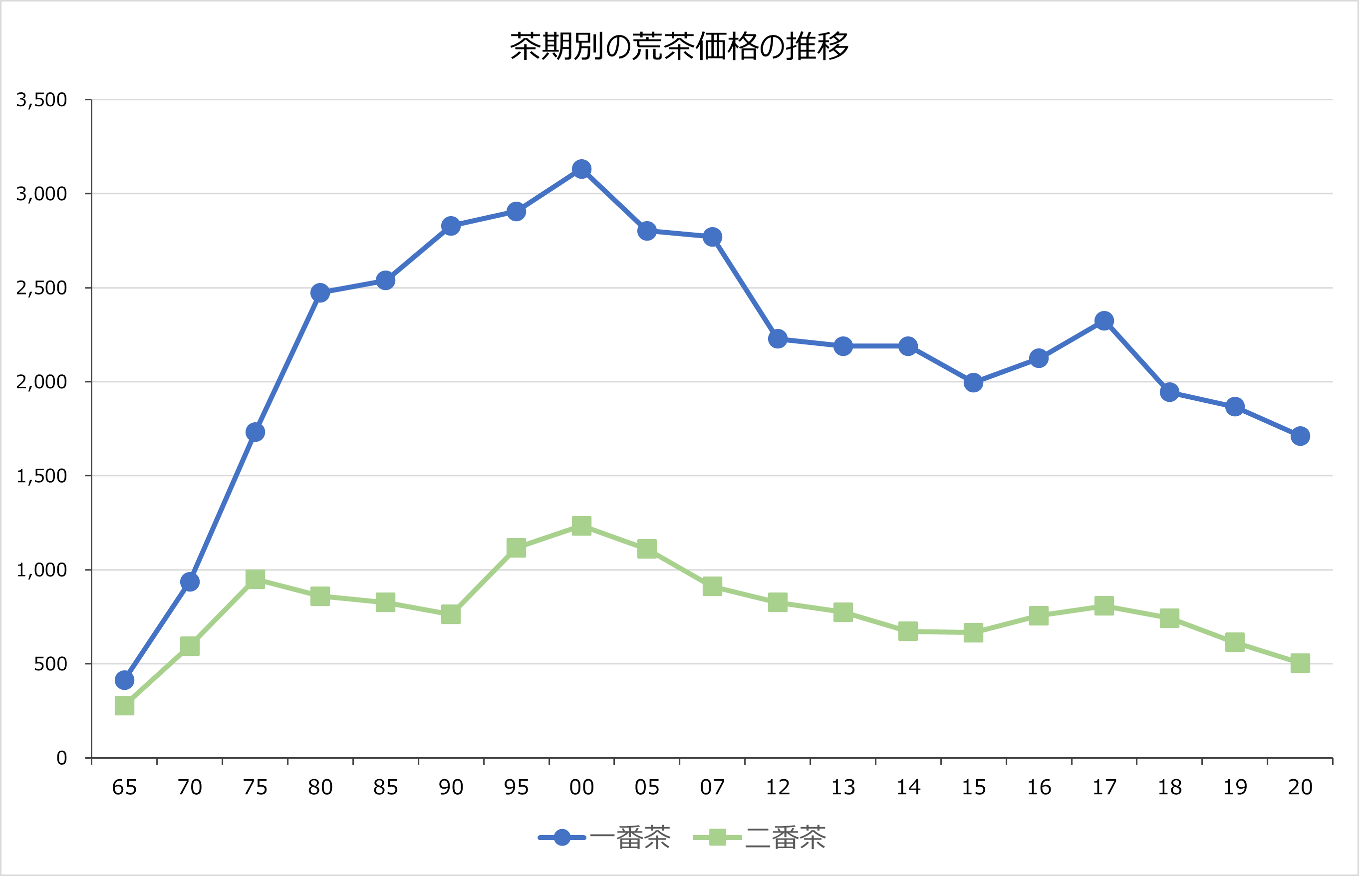 また、生産者の視点では、「急須で淹れるお茶」に使われる、最も品質の高い「一番茶」の価格が下がり続けています。