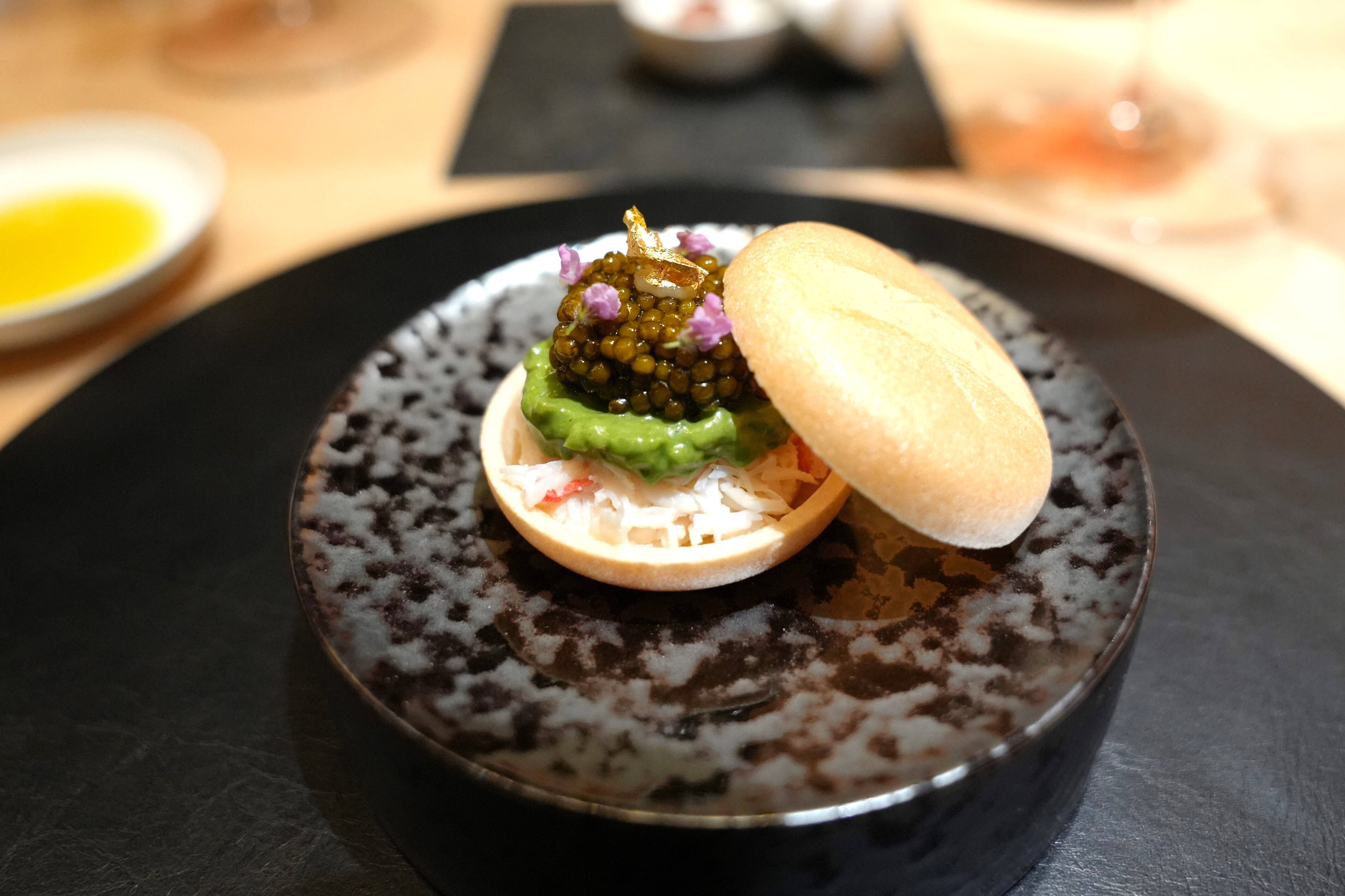 ▲「とらや」さんの最中を使った「最中 キャビア 毛蟹 グリビッシュ」